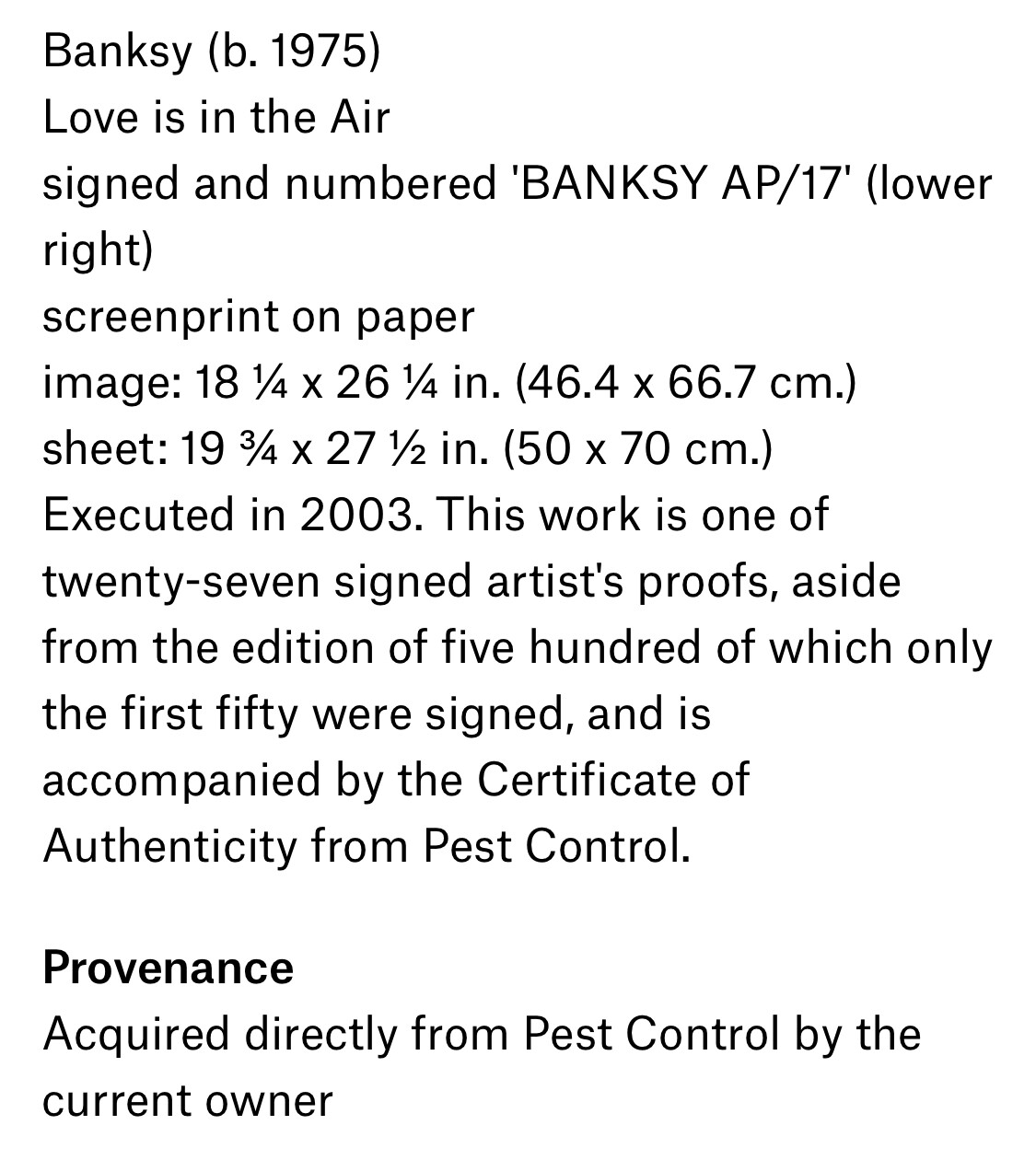 “This work is one of twenty-seven signed artist’s proofs”