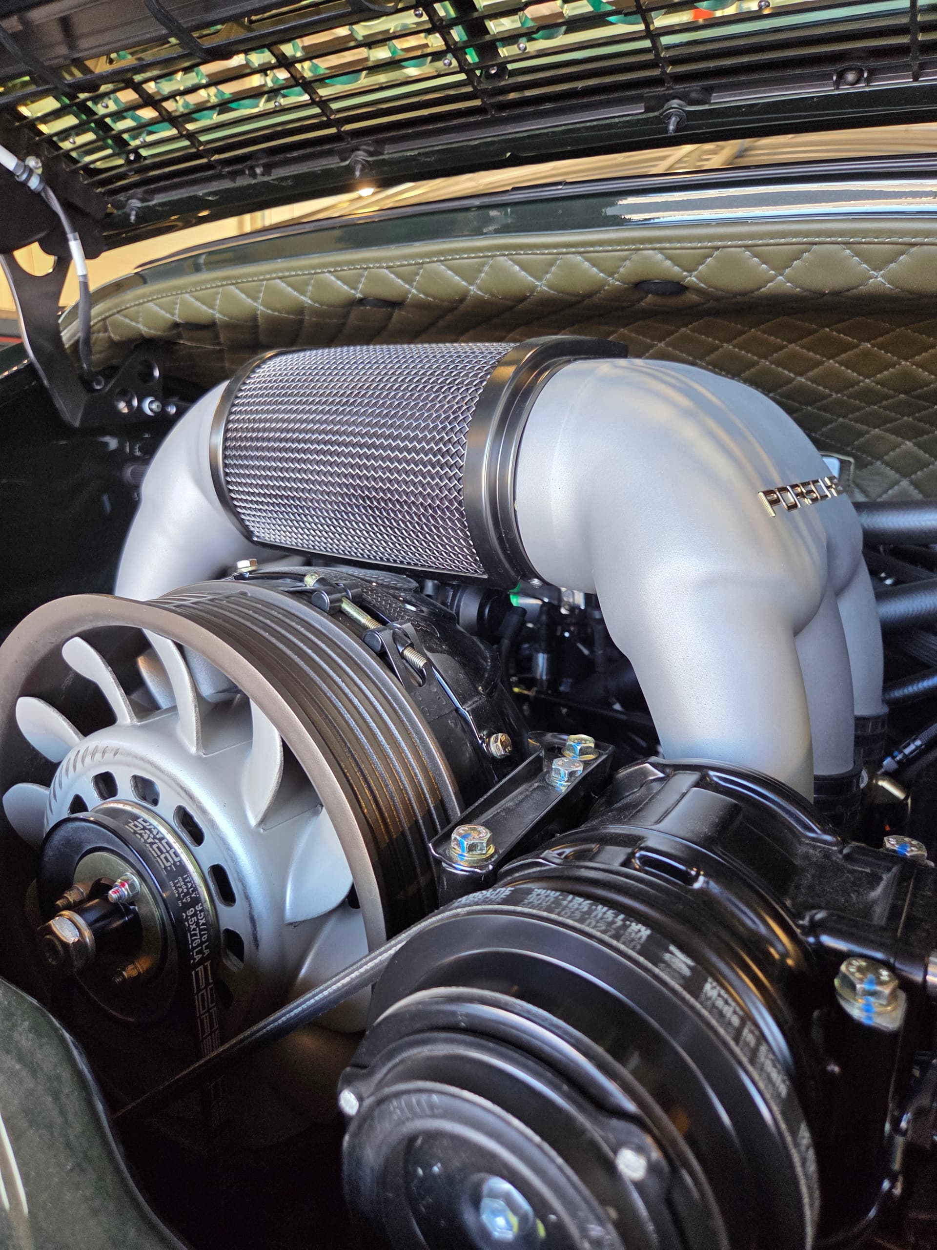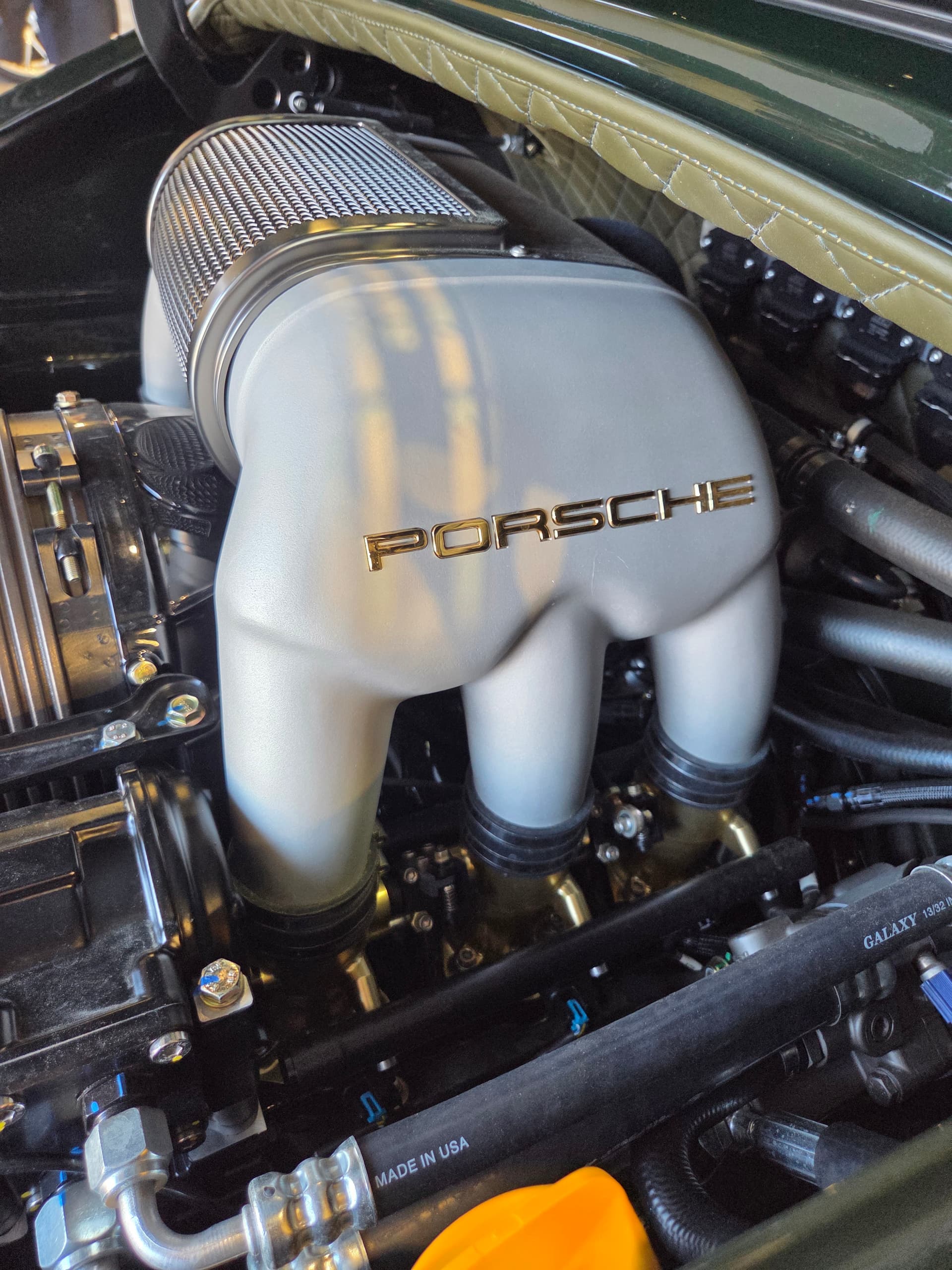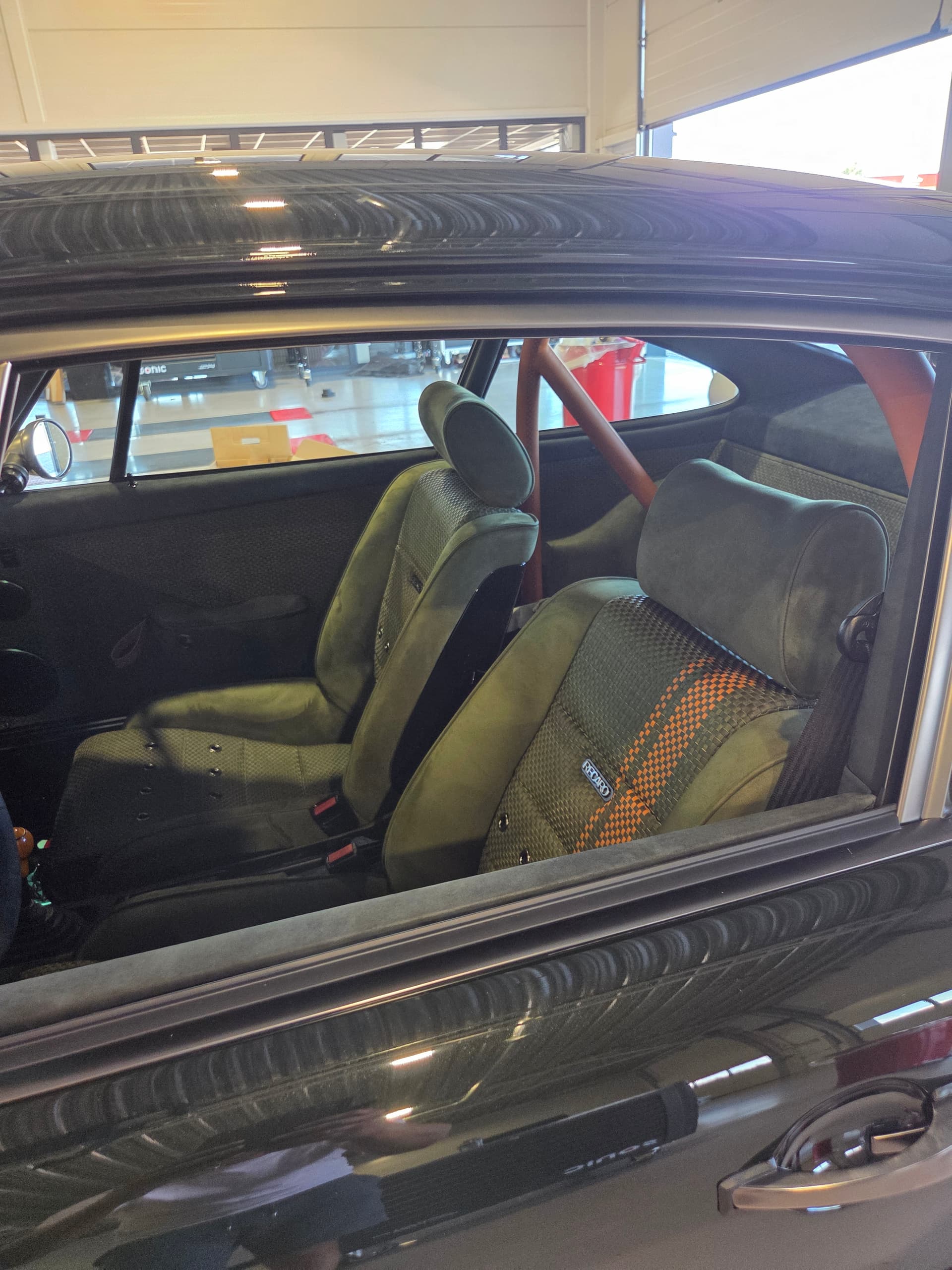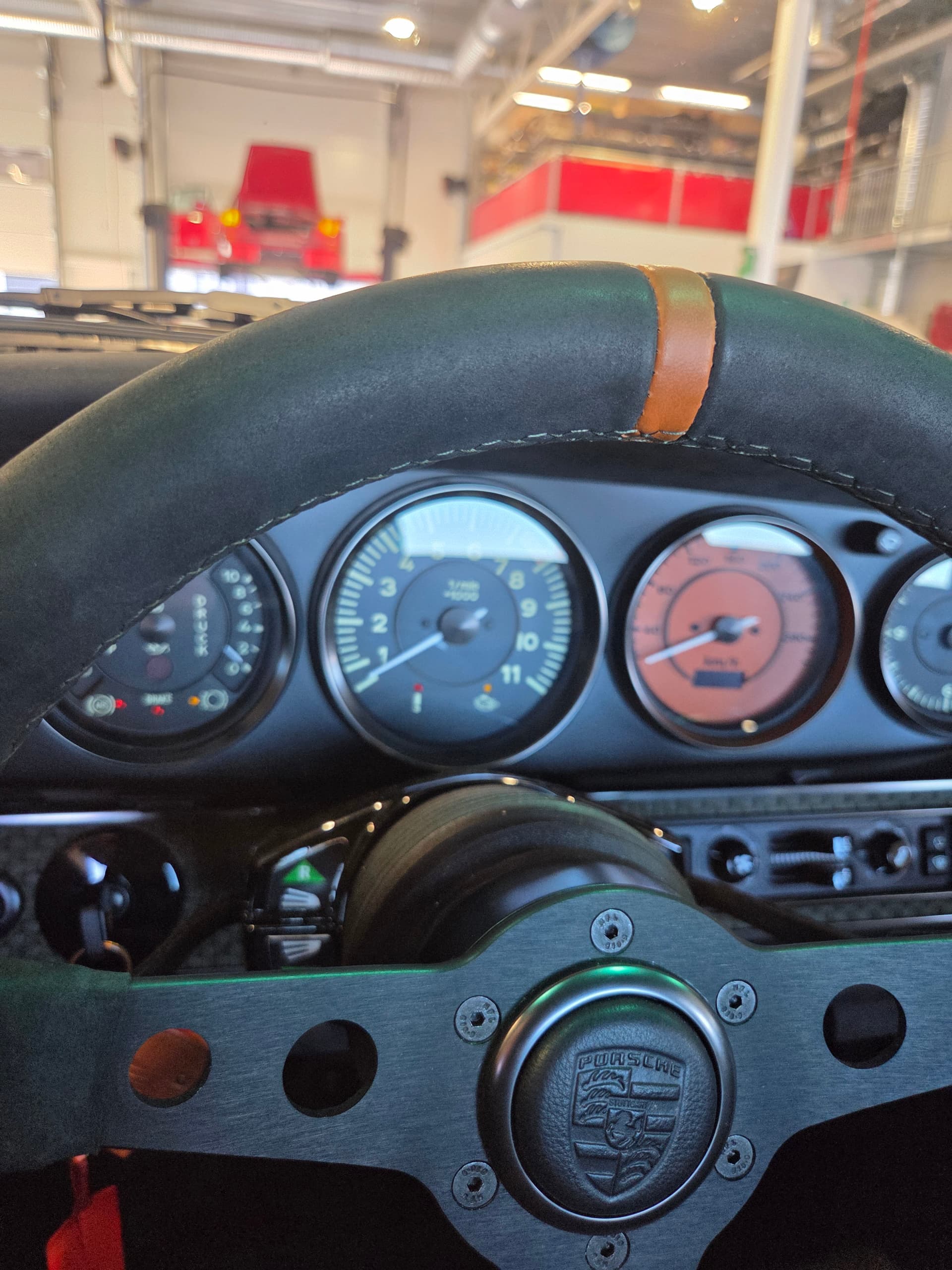 Så å si hele bilen er karbon, all trim,lister, speil, dørhåndtak osv er frest ut i alu, fuchs felgene er custom nylagde i 18" (?) Legg merke til skinnet INNE i motorrommet… osv osv osv osv… helt hinsides detaljnivå… donorbilen er i utgangspunktet norsk fra 1990 med de originale skiltene fra '90 så går ut ifra at bilen har blitt sendt til Singer for ombygging, vet ikke hvordan det slår ut på avgifter. Uansett - lekkert!