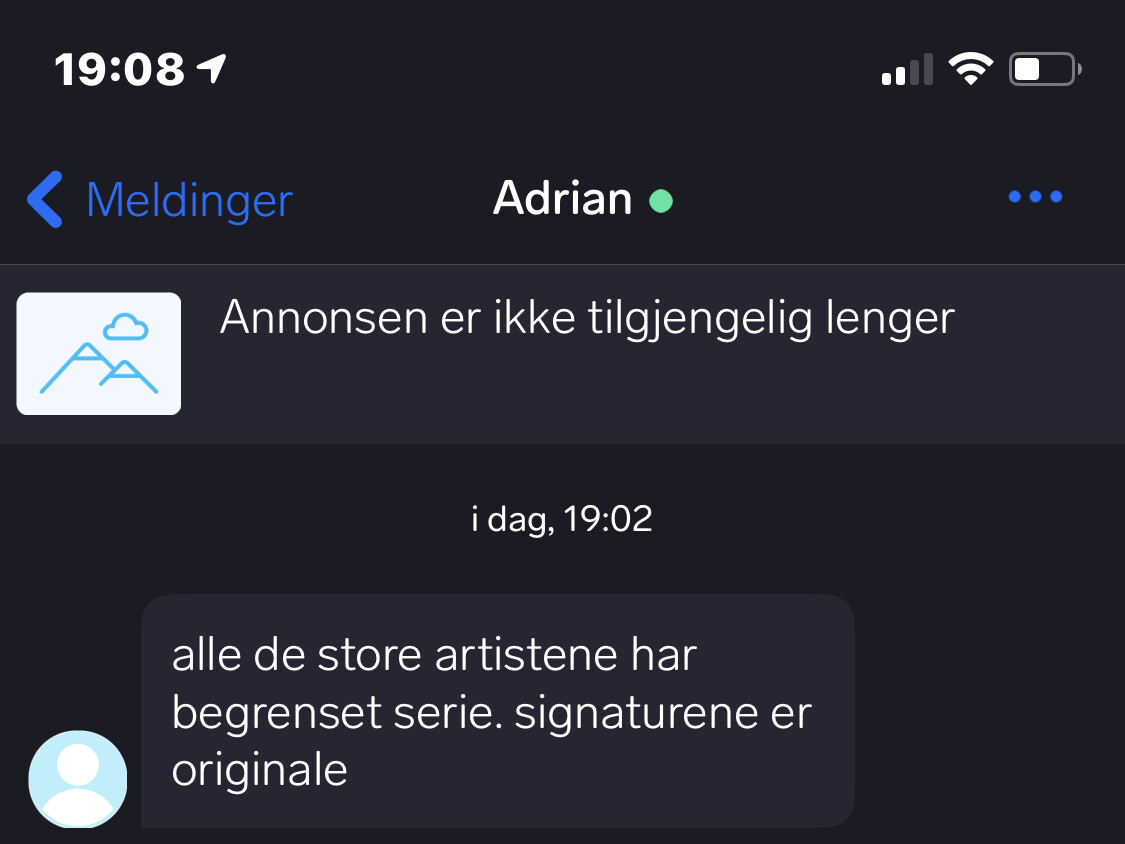 Den var borte for meg men da var det sikkert bare selger som hadde blokkert meg…
