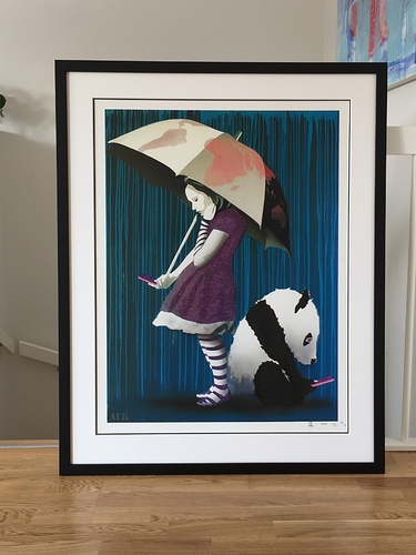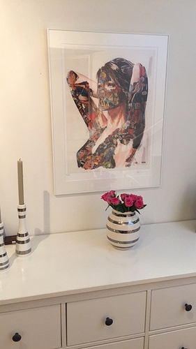 Rammemakeren var tydeligvis ikke enig i min hvite bestilling og monterte en noget dyster passepartout til ICWT istedet - hvilket gjør at den til nød passer på kjøkkenet inntil videre.