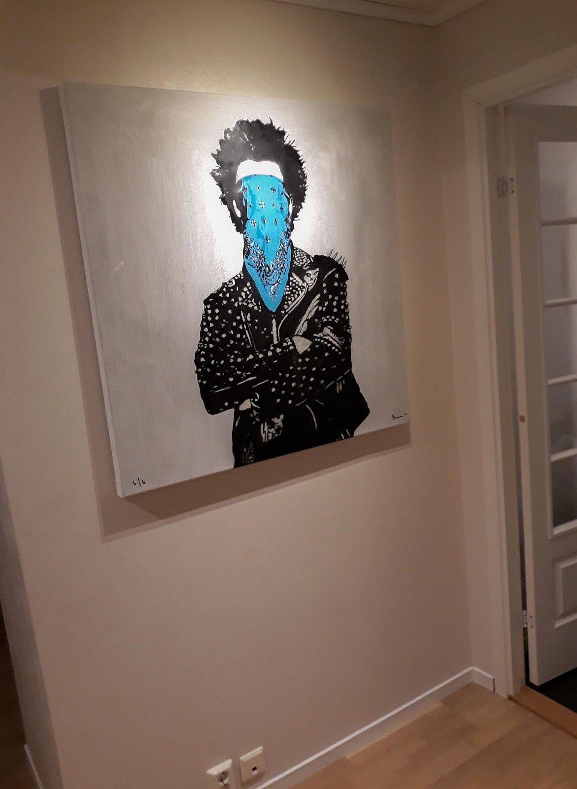 Dolk sitt "Punk’ lerret, blå versjon, selges kr 70.000. Verket måler 100x100 cm, og er nummer seks av seks. Alle har ulik farge, og er således unike. Nummerert, signert og datert. Dette er tidenes røverkjøp. Førstemann til mølla!