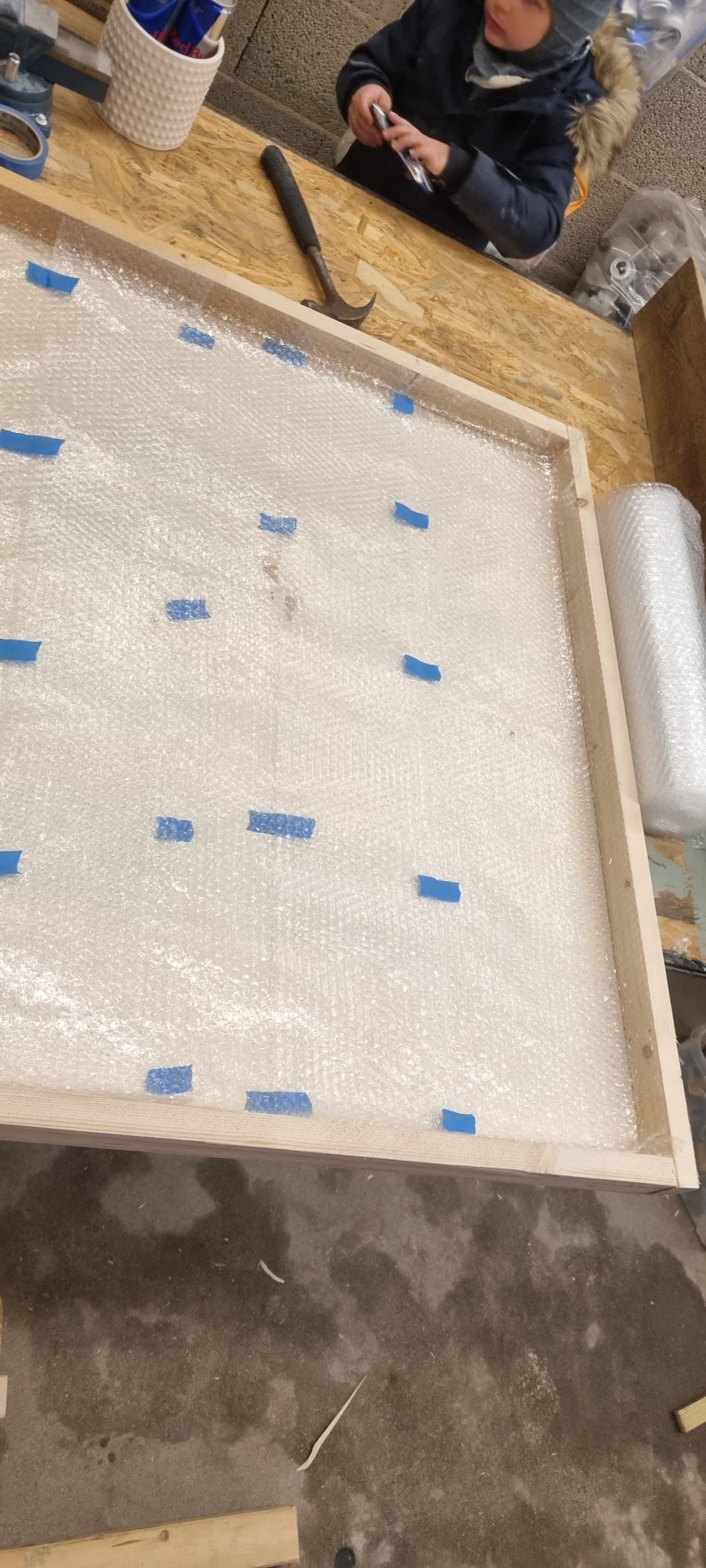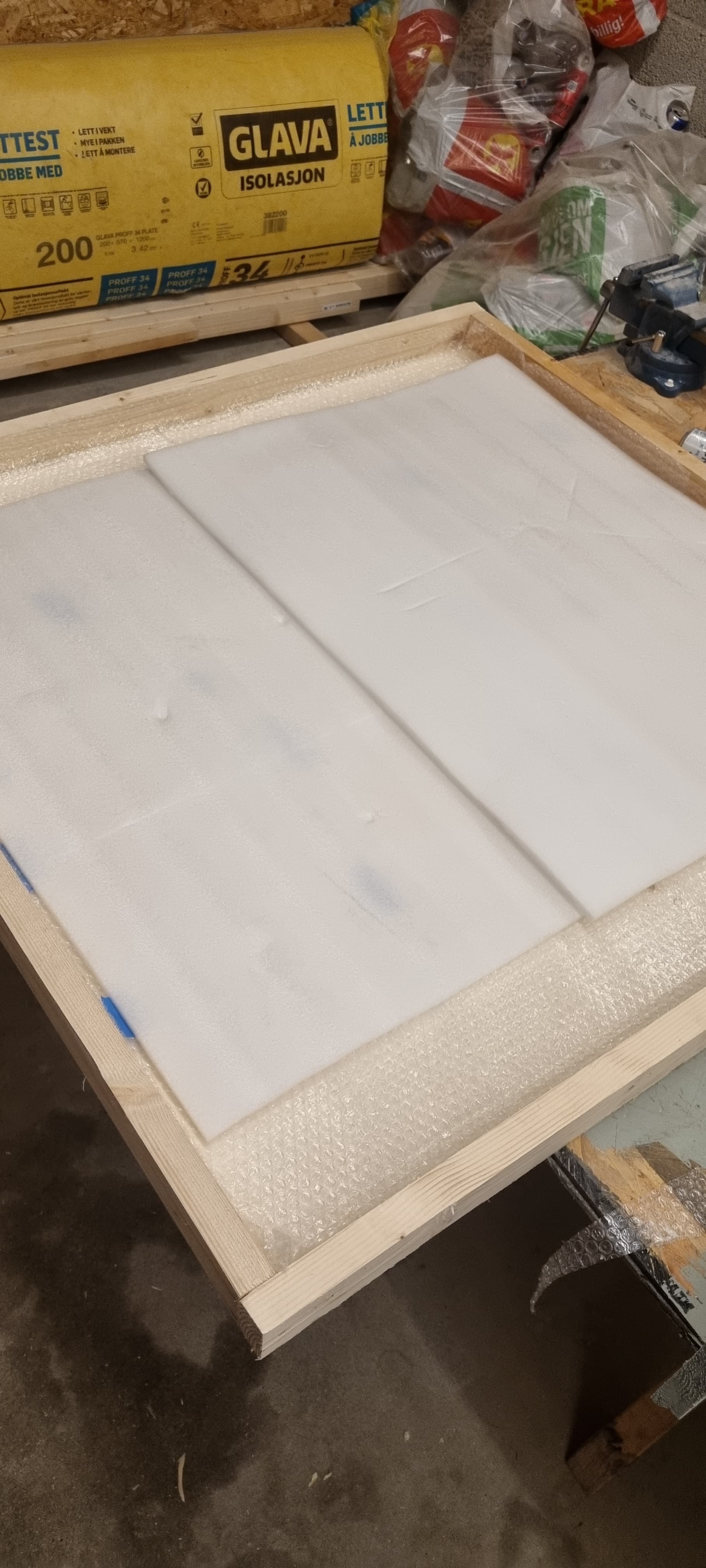 Produksjon er i gang, siste kasse ble laget idag og tenkte å dele med dere hvordan de/denne ser ut innvendig. Det er altså da brukt bobleplast som innvendig kledning i kassen og i “lokket” i denne la han med et par skum matter også.