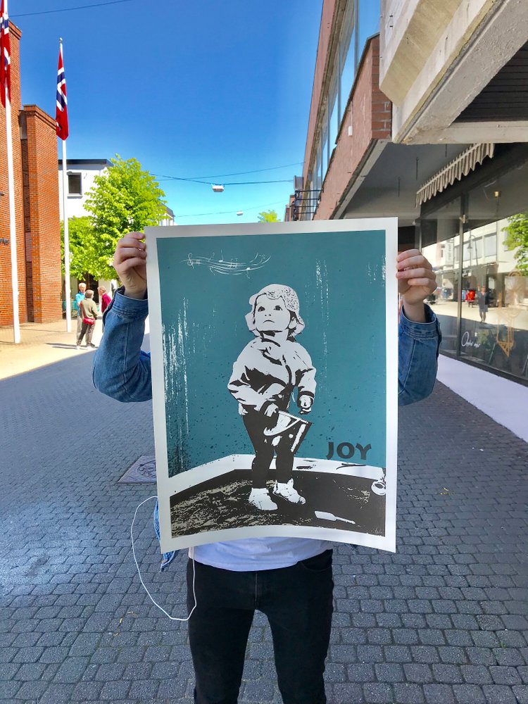 Året i USA endte tragisk med at to skolekamerater døde i en drukningsulykke. Jeg kom hjem til Norge og tok siste året på VGS i 2017. Jeg gikk linjen studiespesialiserende, og tenkte mye på hvilke valg jeg hadde etter videregående. Jeg kom frem til at det var kunst jeg ville drive med, og å drive et galleri hvor jeg kunne stille ut både min egen og også andres kunst virket perfekt for meg. Flere venner av familien er kunstnere, og flere har gallerier og/eller ateliér. Når vi var mindre brukte vi besøke dem og se på alt av malerier og trykk. Jeg var alltid fascinert over hvordan det å være kunstner eller gallerist måtte være. Over sommeren gikk all tiden inn I leting etter lokale, og planlegging. Jeg samlet inn 15 kunstnere, så i September 2017 kom den store åpnings dagen. Jeg har hatt åpent i 9 måneder nå, og det har vært en svært lærerik periode. Jeg lager også min egen kunst, mest I stilen pop og gatekunst. Skal legge ved noen bilder under så dere kan se hva jeg holder på med. Det er faktisk mine egne bilder som det har solgt mest av. Både på internett, og i galleriet. Kan legge ved link til nettsiden min. Den har nettopp vert nede litt på grunn av at det ble lagt til nye kunstverk i butikken.