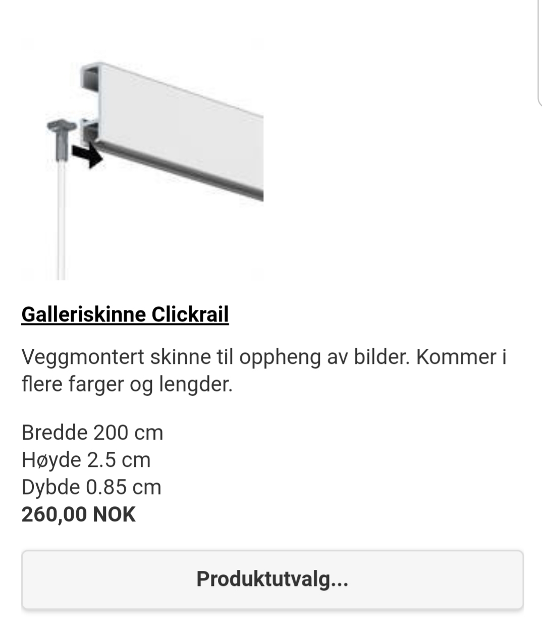 Jeg har galleriskinner i flere rom hjemme. Perfekt å kunne bytte litt på hva som henger i huset.