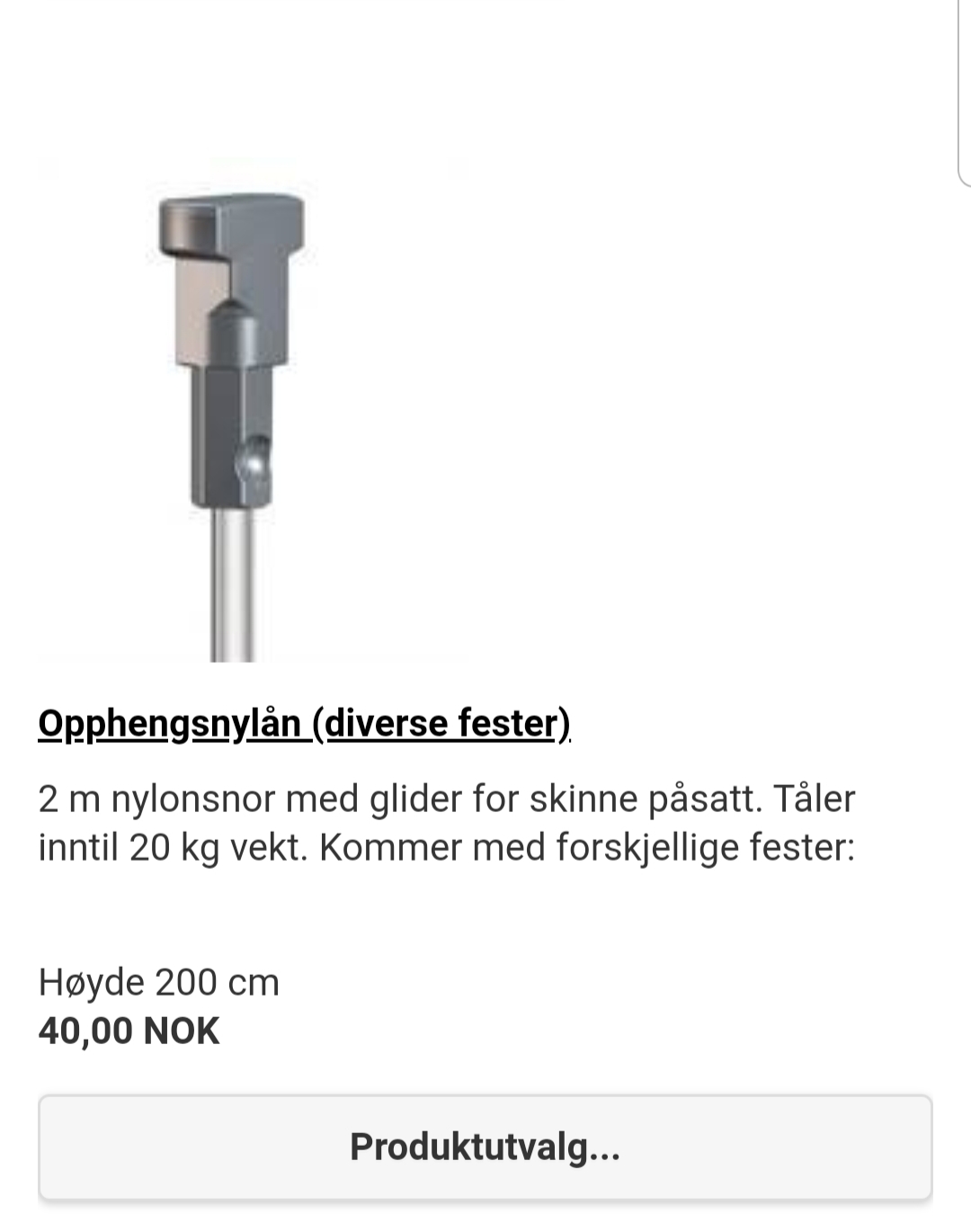 Hold deg unna fester som har skruer som må skrues igjen. De kan løsne om bildet er for tungt. Hold deg til fester som er integrert i vaieren, slik som på bildet over.
