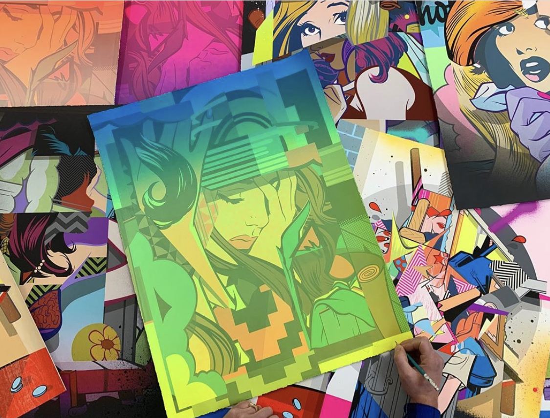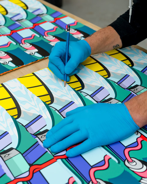 DROWN $475.00 20 Color, Hand-Pulled Screen PrintFeaturing a two-color split fountainMohawk Superfine UltraWhite, 160 lb. cover22"x30”Deckled EdgesSigned and numbered by POSE Edition of 100