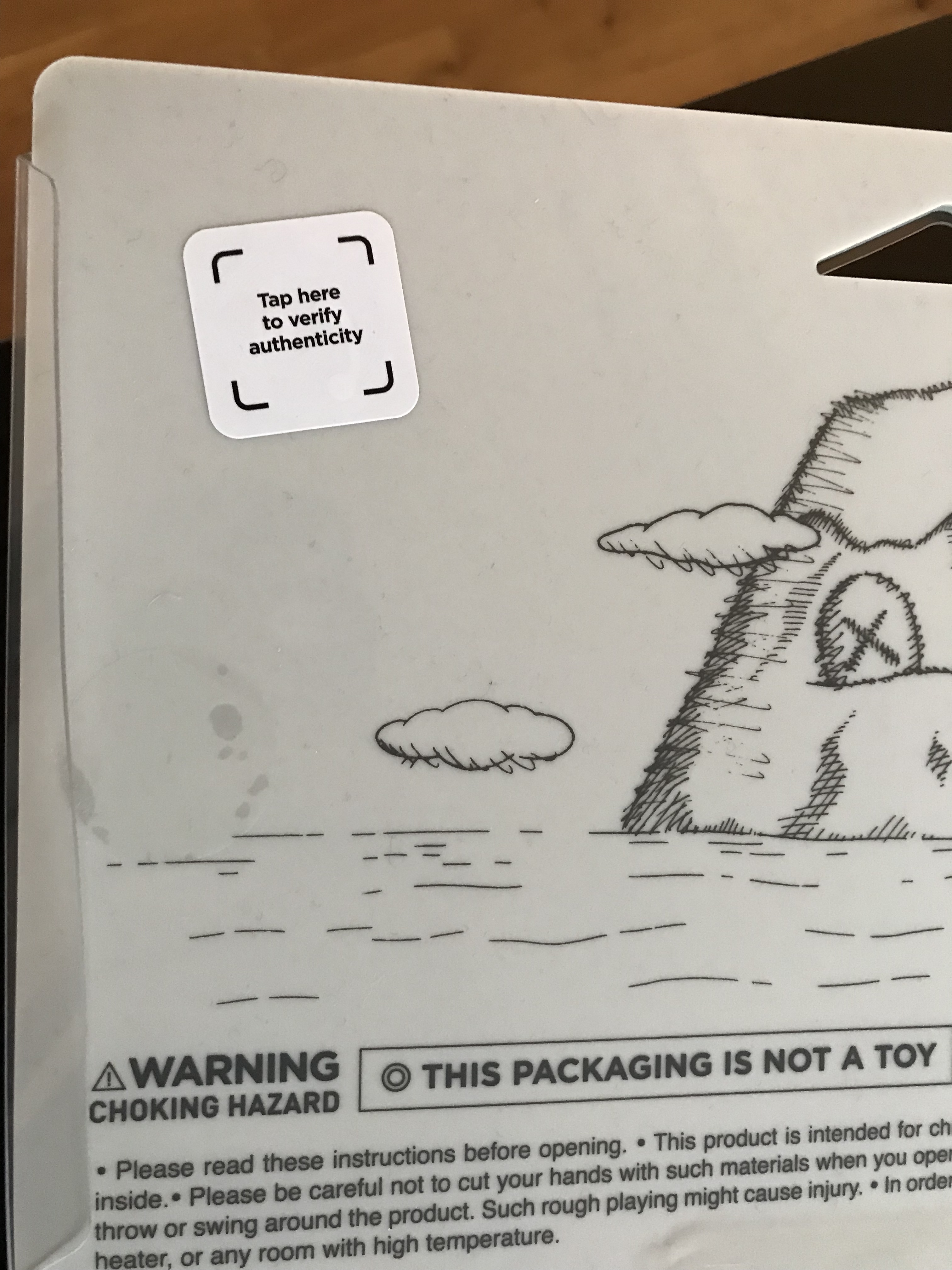 Kaws benytter en NFC chip på disse companionene. Du bruker da appen ARR Authentication til å scanne chipen for å se at dette er en original. Jeg prøvde det akkurat. Smart hvis dette ikke kan kopieres. Har dette vært på tidligere companions? Small lie hadde ikke dette
