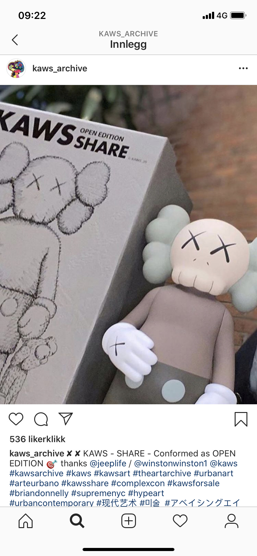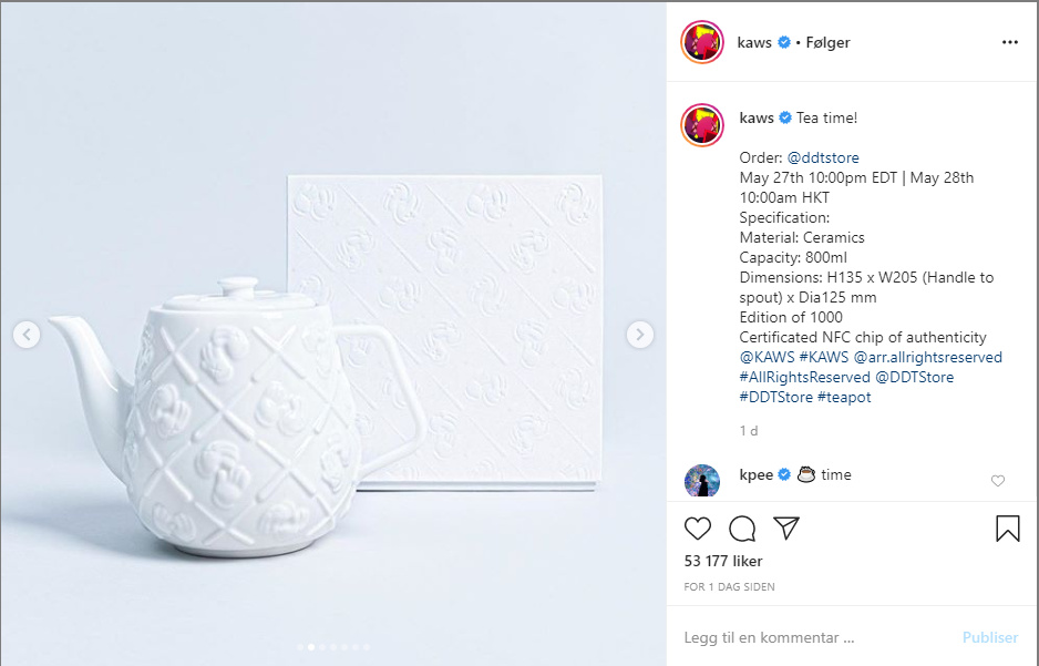 Det er vel strengt tatt et trykk inni der, så derav prisen :-). Et signert Kaws trykk for rundt 35 tusen er jo ikke så gale i dagens marked. Men opplaget er høyt og motivet kanskje litt kjedeligere enn mye annet siden det er sort/hvitt. Personlig synes jeg noen av skissemotivene hans er ikke så verst.