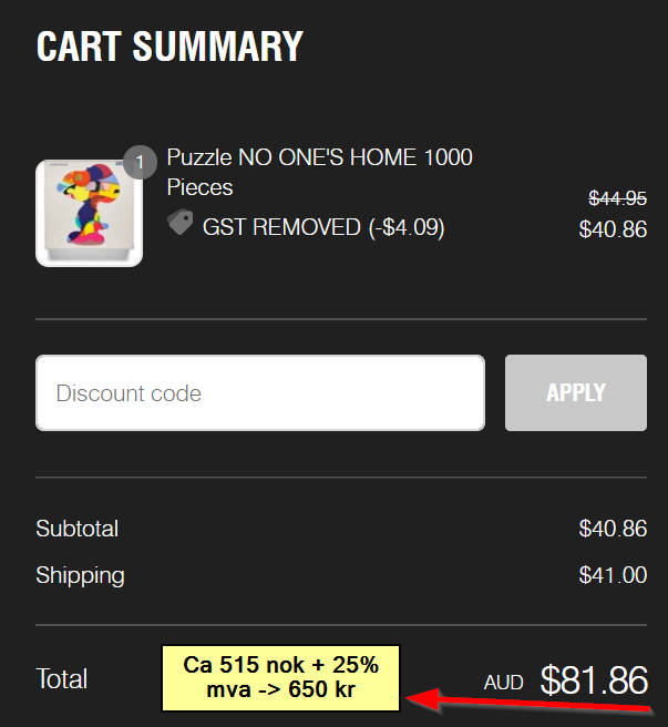Kost er per idag 650 kr (se under) - så selger for 650kr + frakt og du slipper vente 3 uker på leveranse fra Australia…