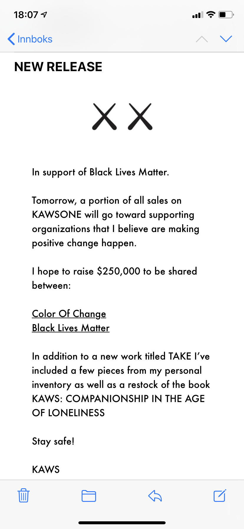 kaws A few months ago with no public gatherings in sight I decided to work on a project with @ARR.AllRightsReserved where we would send one of my sculptures 41.5 kilometers (136,296 feet) up into the stratosphere. On July 13th we successfully sent COMPANION up and back while taking video and still photos of the journey. Thank you for viewing KAWS: HOLIDAY SPACE