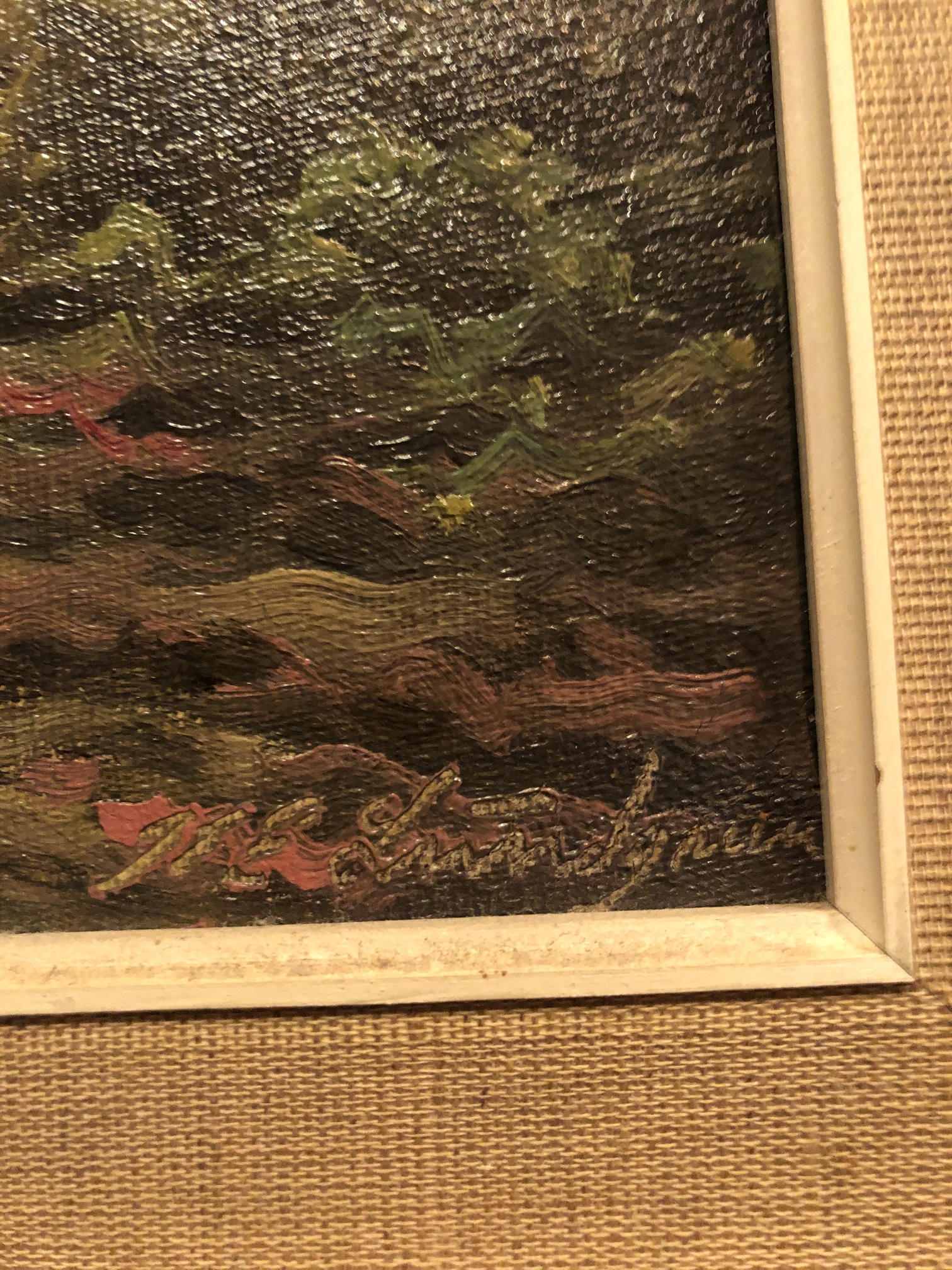 Har to malerier her som jeg sliter med å forstå signatur og på det andre monogrammet (olje lerret ogolje på papir.)