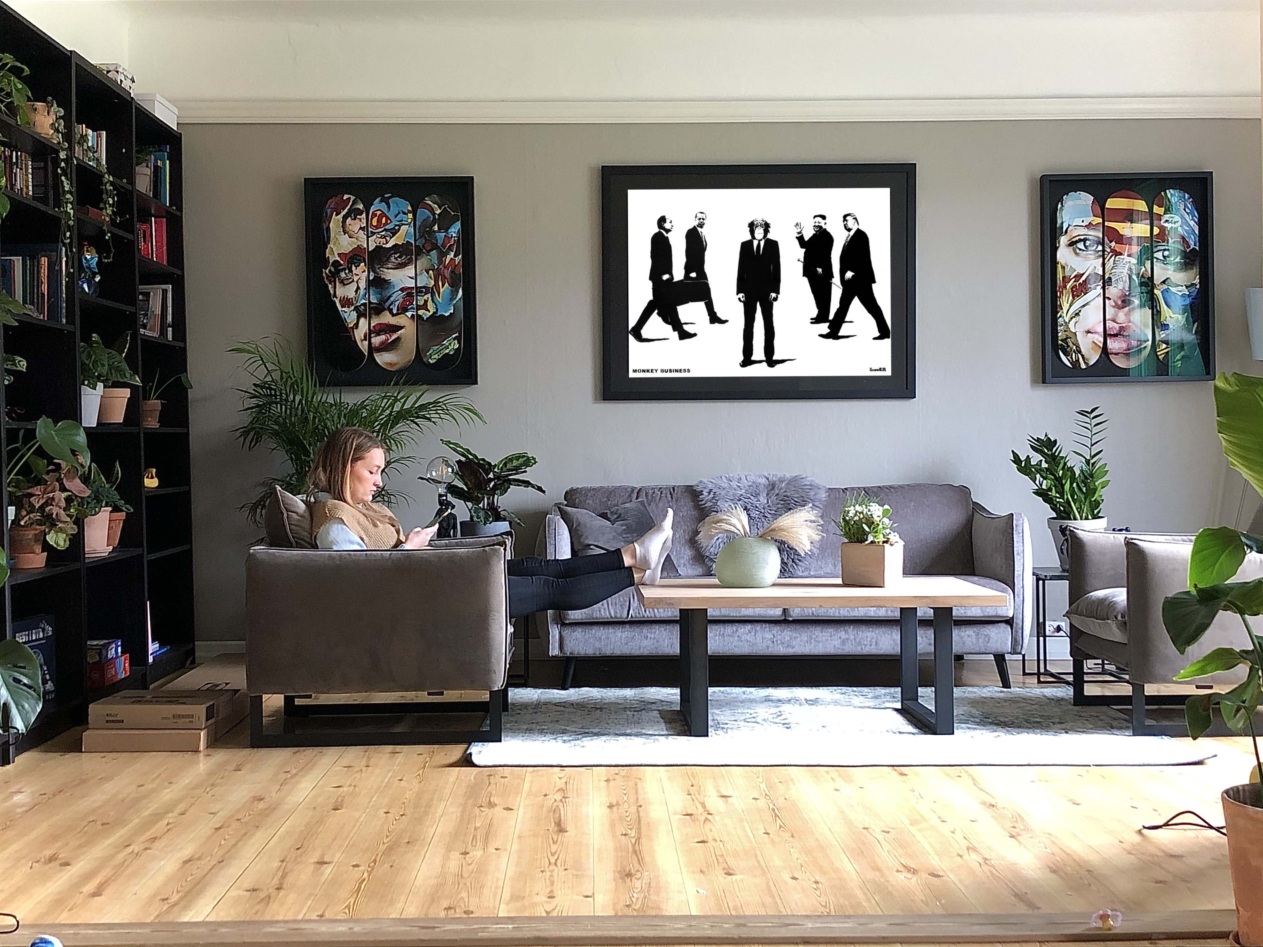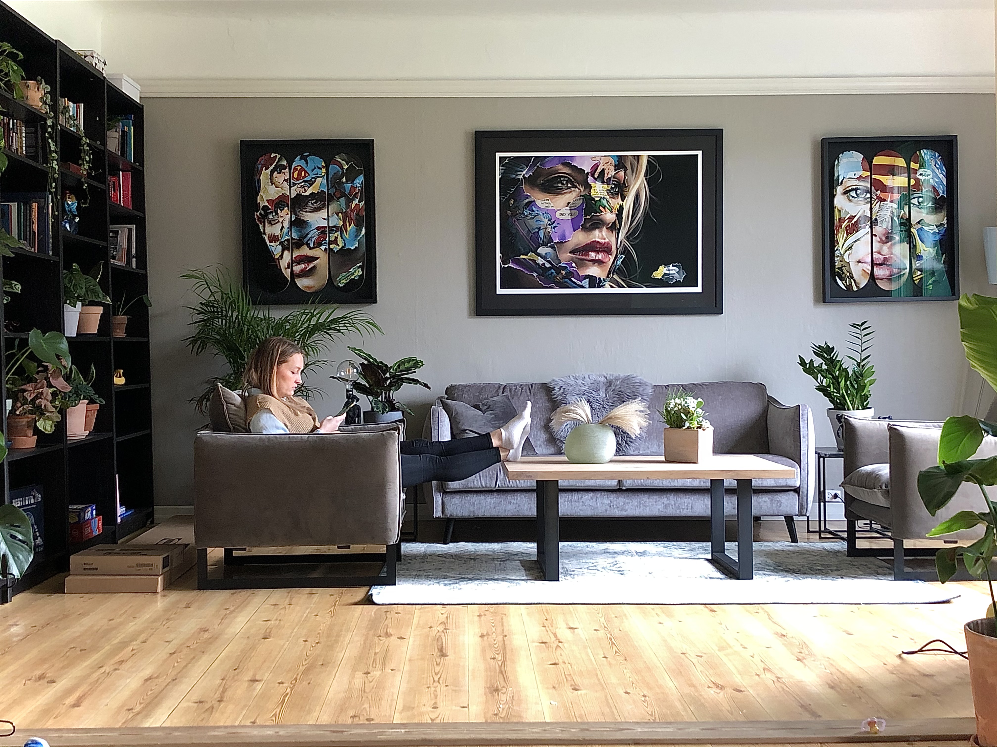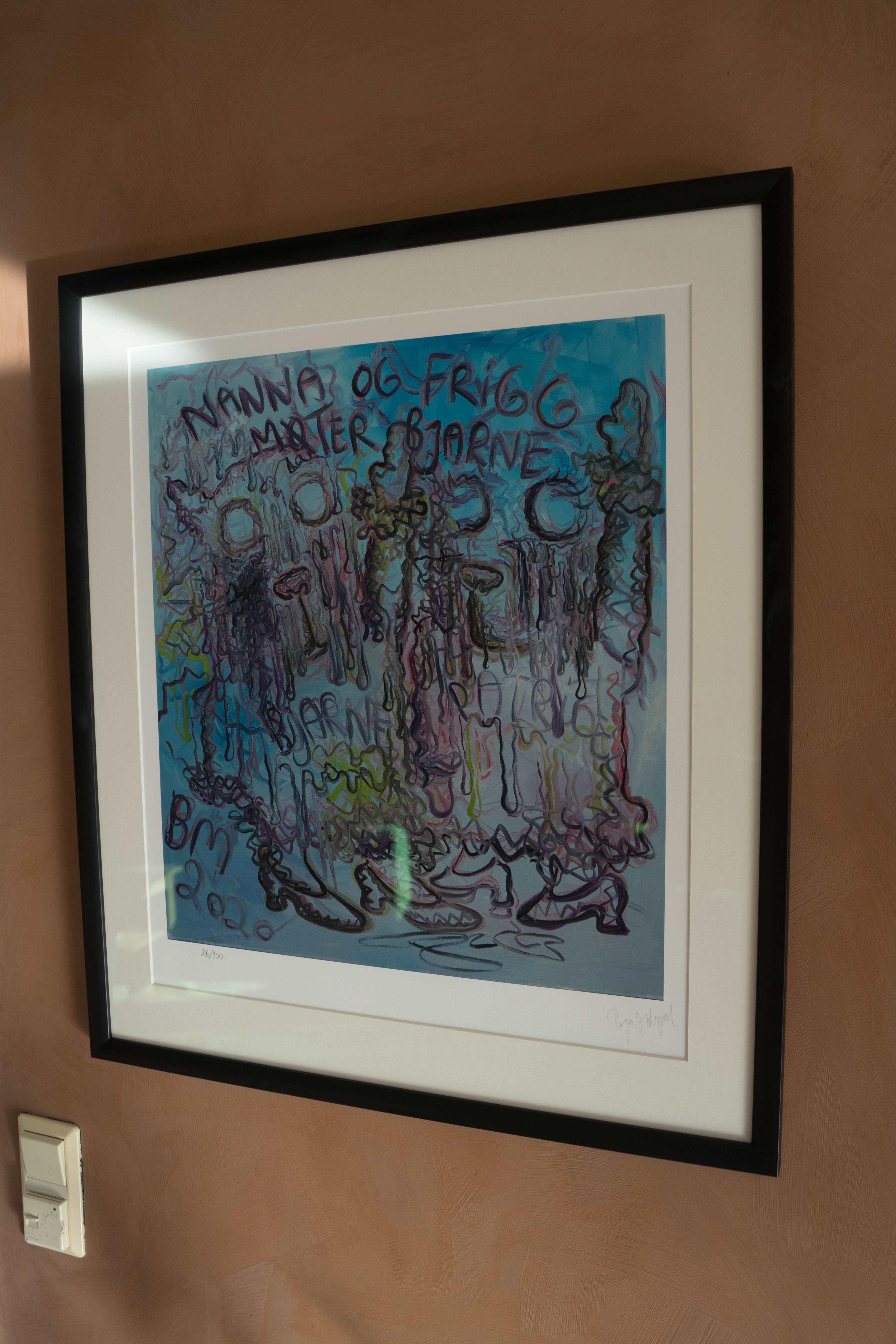 Hvem er kunstneren på verket til venstre i bildet, under varmepumpen?