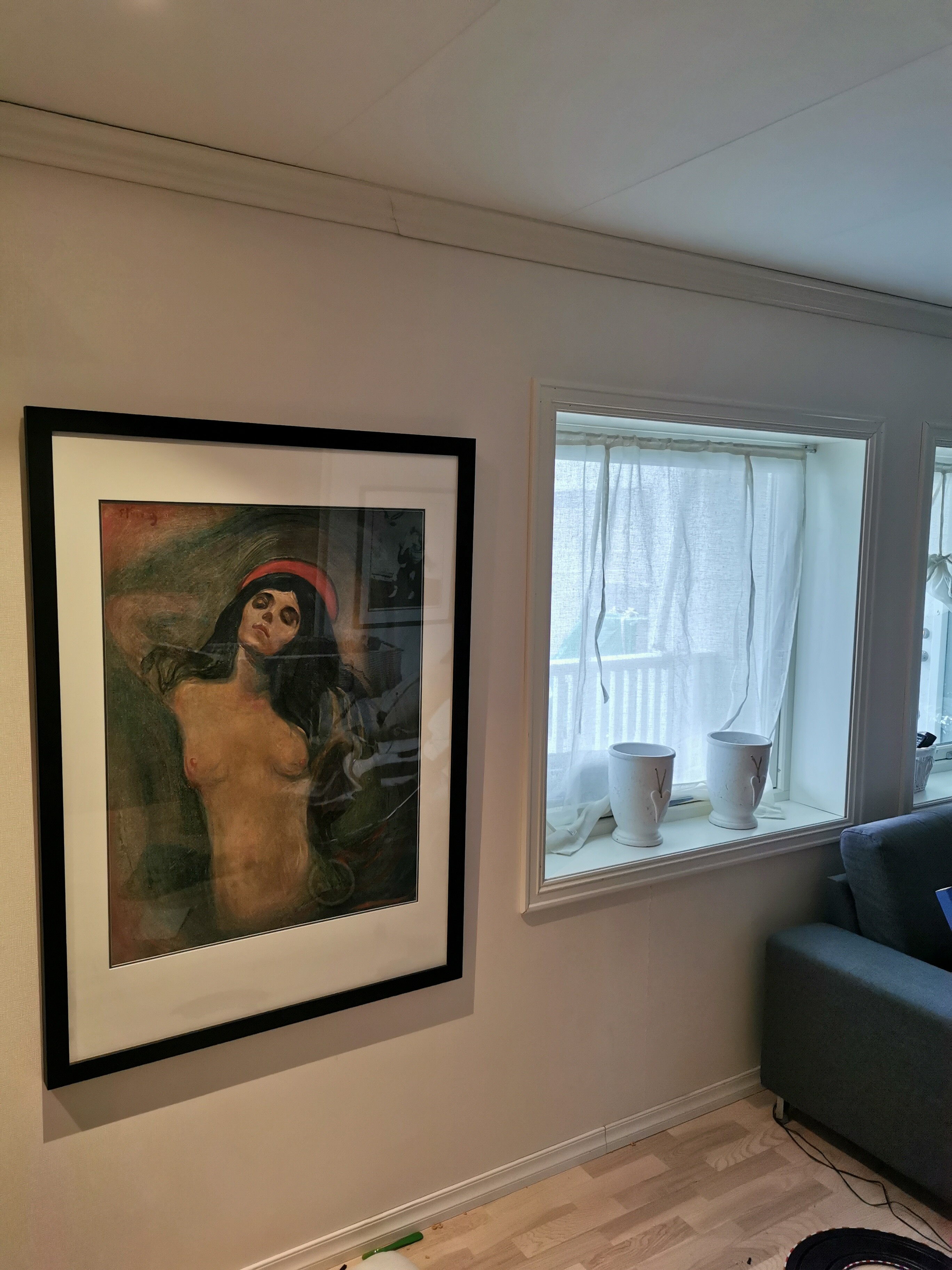 Mitt første kjøp, madonna lystrykk fra Stuttgart(?) utstillingen i 1954 jeg fikk omrammet i litt mer moderne ramme for å gi det litt nytt liv.