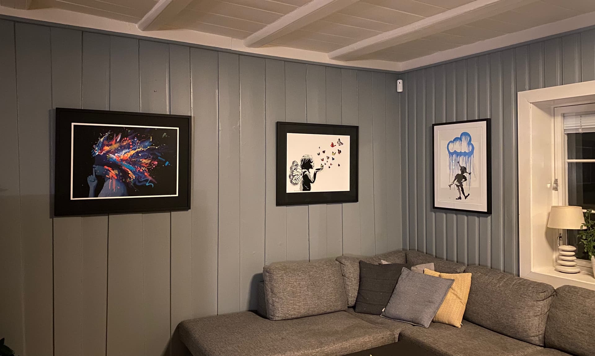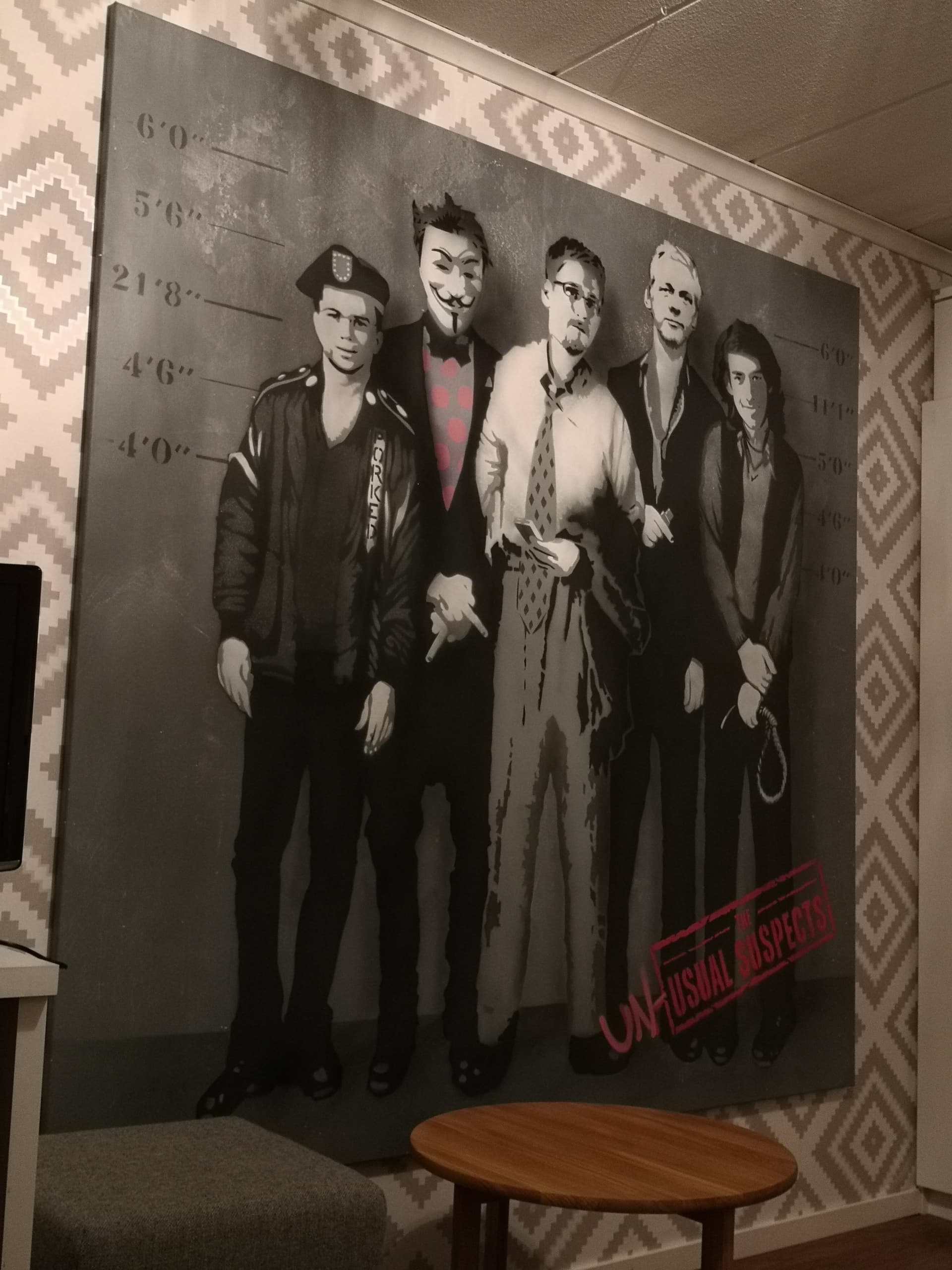 Det som ligger til salgs på Finn er litt annerledes, med rosa telefon bl.a. Mitt er likt det som var på gaten første gang. Men det er vel x/3 dette. Det tredje verket skal ha blitt gitt til Julian Assange på ambassaden i London. Aner ikke om det eksisterer lenger, eller hva som har skjedd med det. Hadde vært artig å finne ut av det.