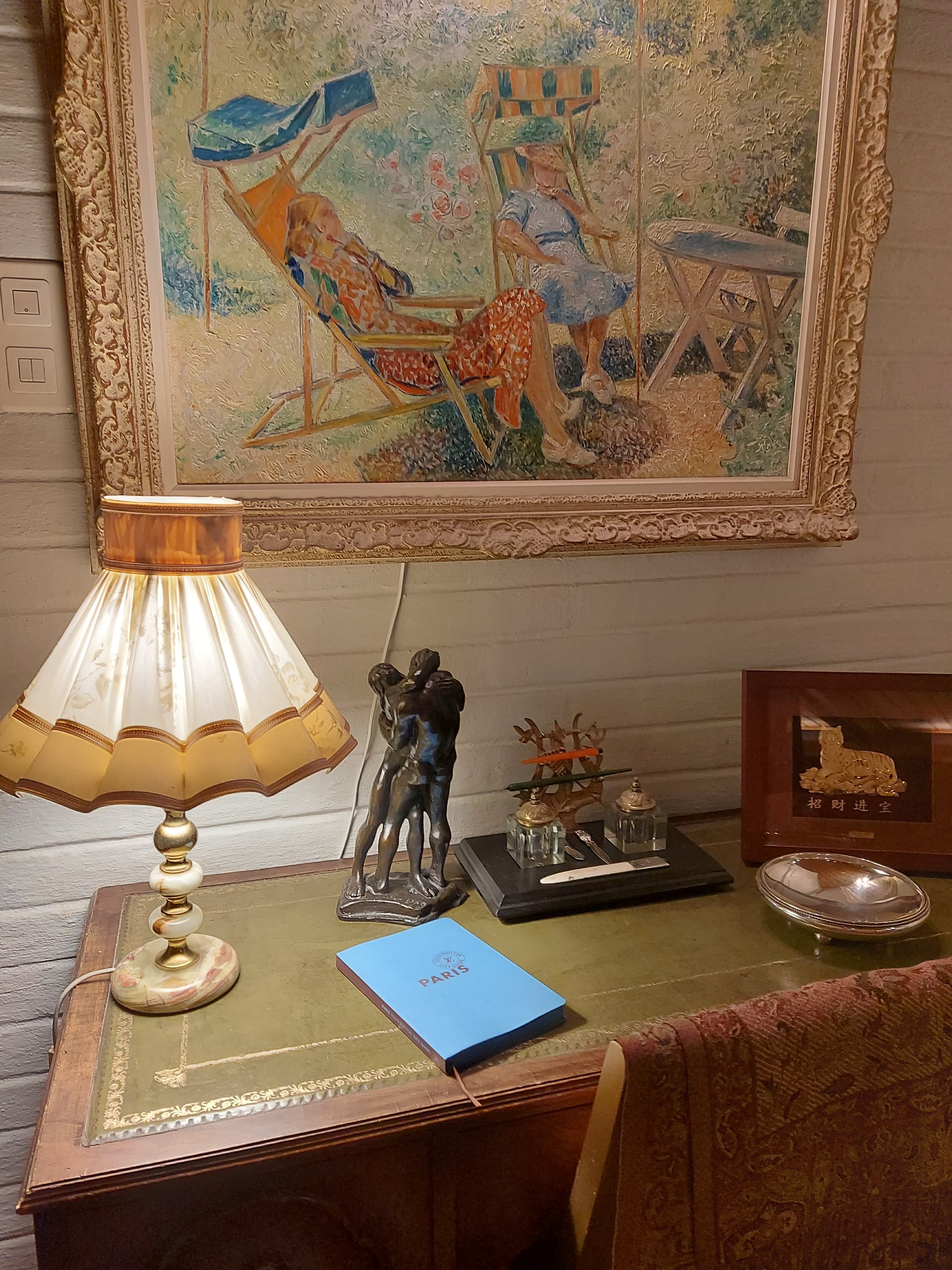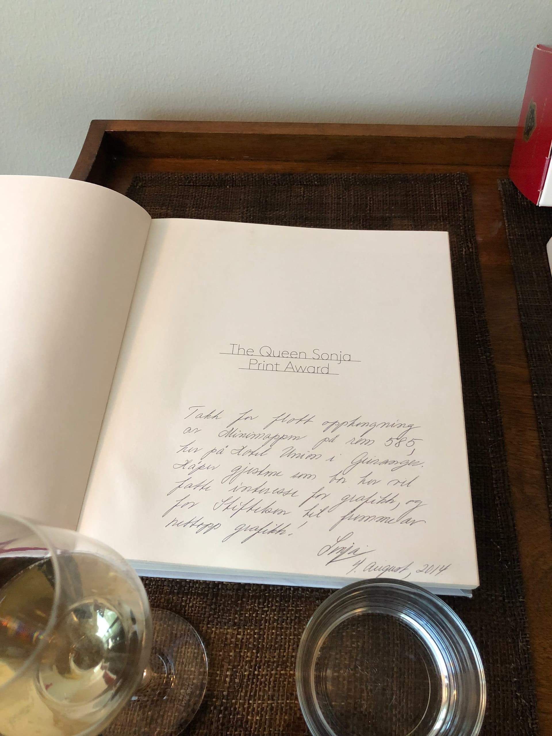 Er ikke hjemme, men må få vise hva jeg ser på akkurat nå. Sitter på bryllupssuiten på Union Hotel Geiranger og nyter vakker kunst levert av en meget respektert royal:
