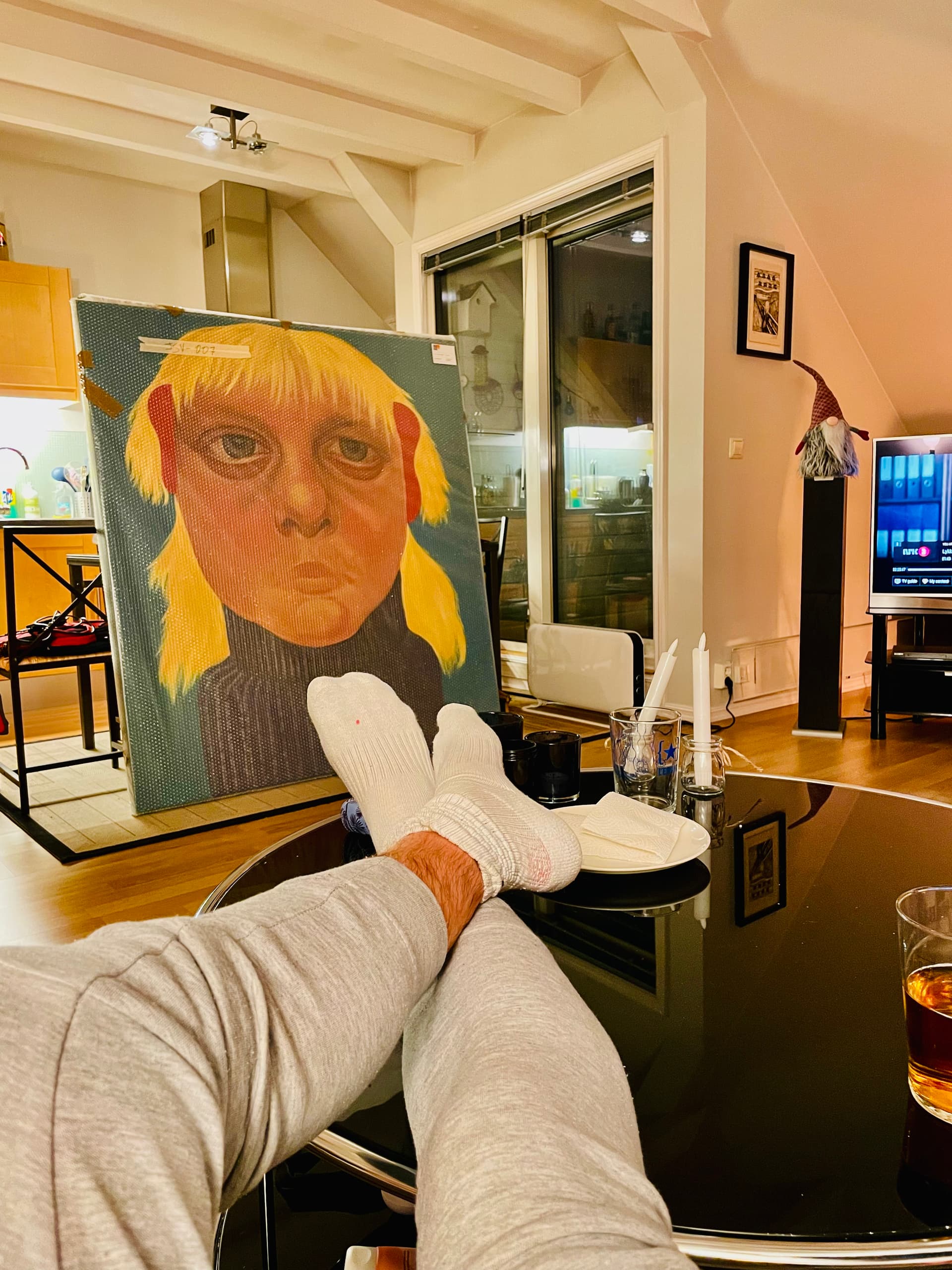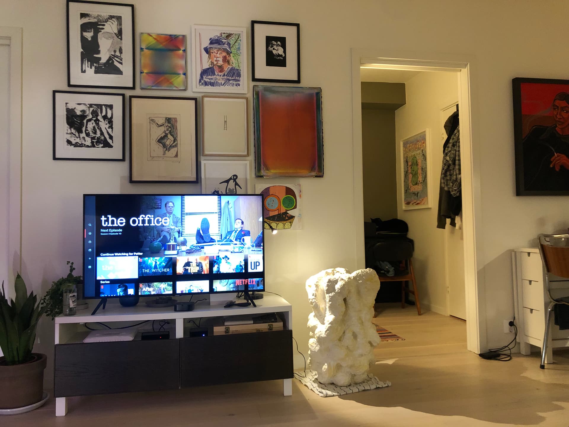 Hjemmekontor-rot, døende planter, skitten katt på piano, malplassert skulptur på kjøkkenklut og skeive bilder. Og The Office, ofc. Veldig Instagram-vennlig bilde mao. God helg