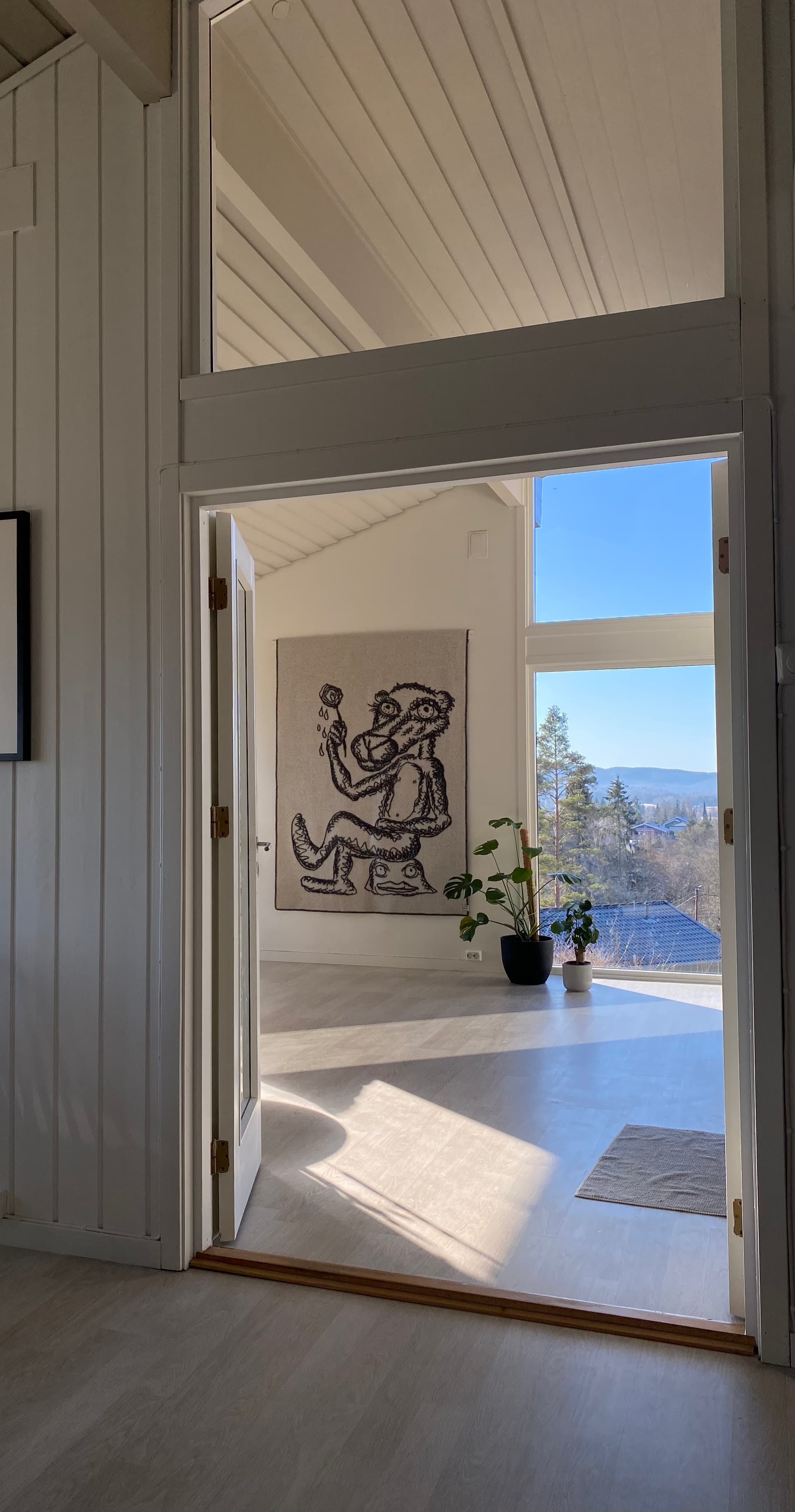 Utrolig stilig! Både teppet og veggen - kan henge mye god og stor kunst der ![]()