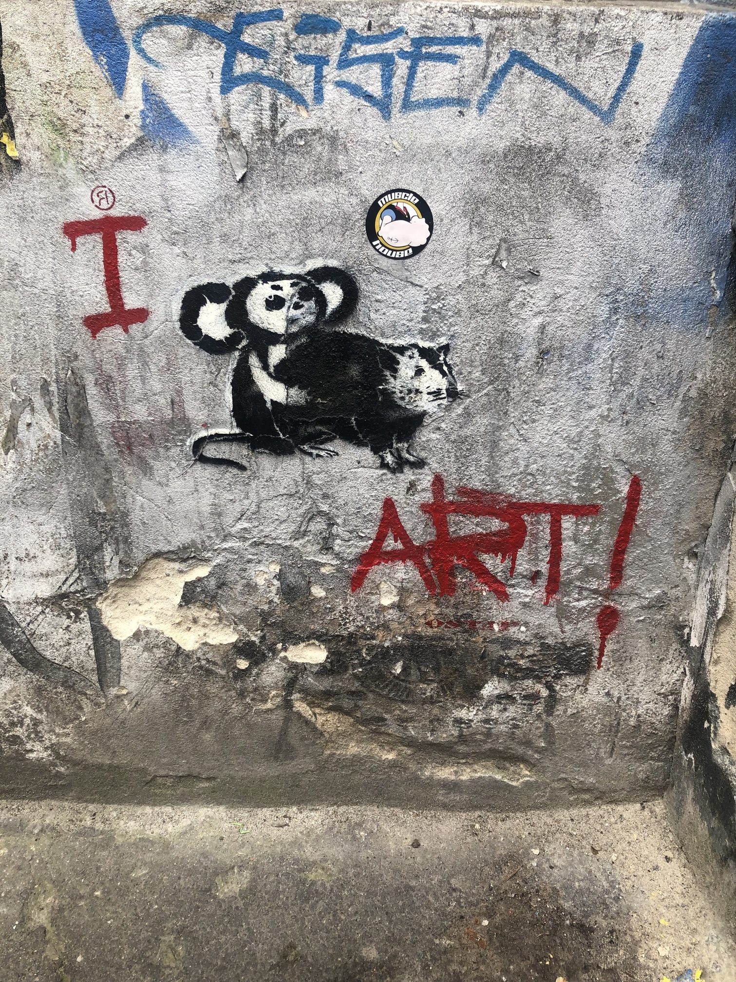Første mai. 19 kompiser drar til Berlin. På programmet har vi noen vilkårlige galleri på timeplanen. Har også leid inn en egen guide som skal gi oss en øl-tur 3 mai, og 4 mai en mat-tur. Alt rundt i øst-berlin. Jeg har ikke satt meg noe mål annet enn å ha det moro med kompiser. Da er det jo alltid en gøy bonus når gatekunst plutselig dukker opp på vår vei.