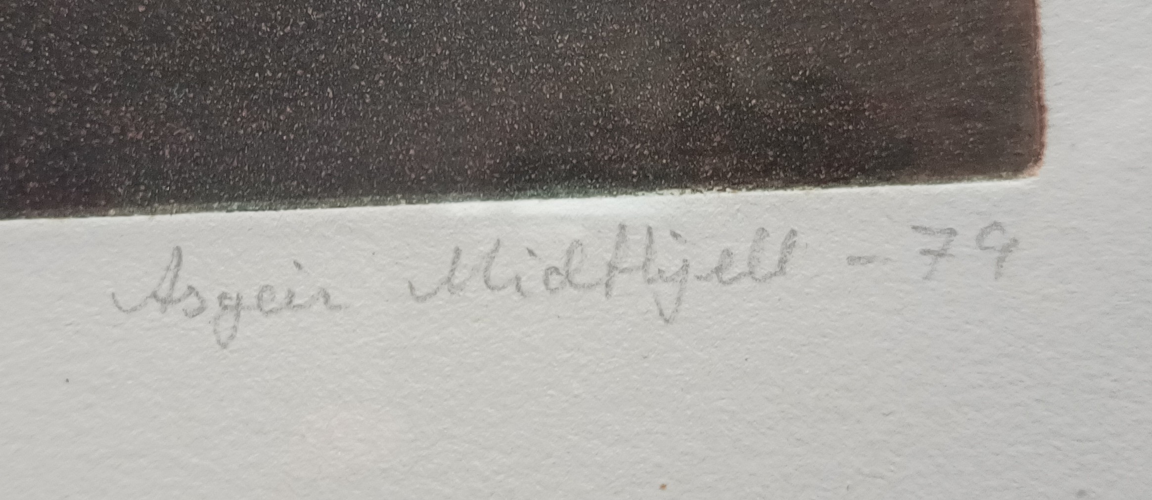 Guttorm Guttormsgaard, 1938-2019. Han var en av de sentrale norske grafikerne fra 1960-tallet og frem til sin død. Guttormsgaard påvirket mange grafikere med sin undervisning ved grafikkavdelingen, Statens Kunstakademi fra 1979 - 1986 hvor han var Professor, i 1983/1984 var han rektor samme sted. Han udførte under hele sin karriere store utsmykkingsoppdrag bla fasaden til Domus Athletica UiO fra 1996. De to raderingene er fine eksempler på Guttormsgaards kunst.