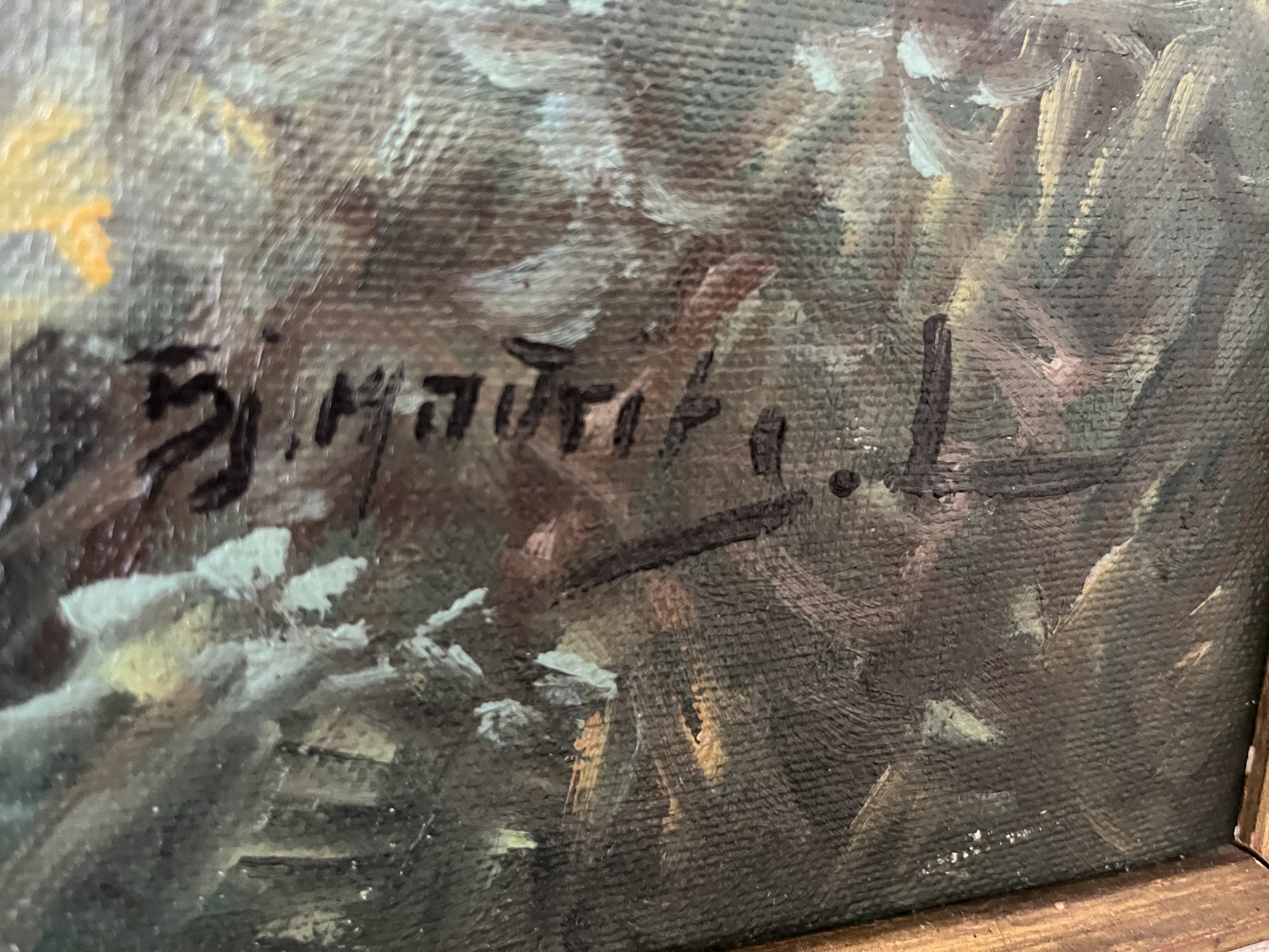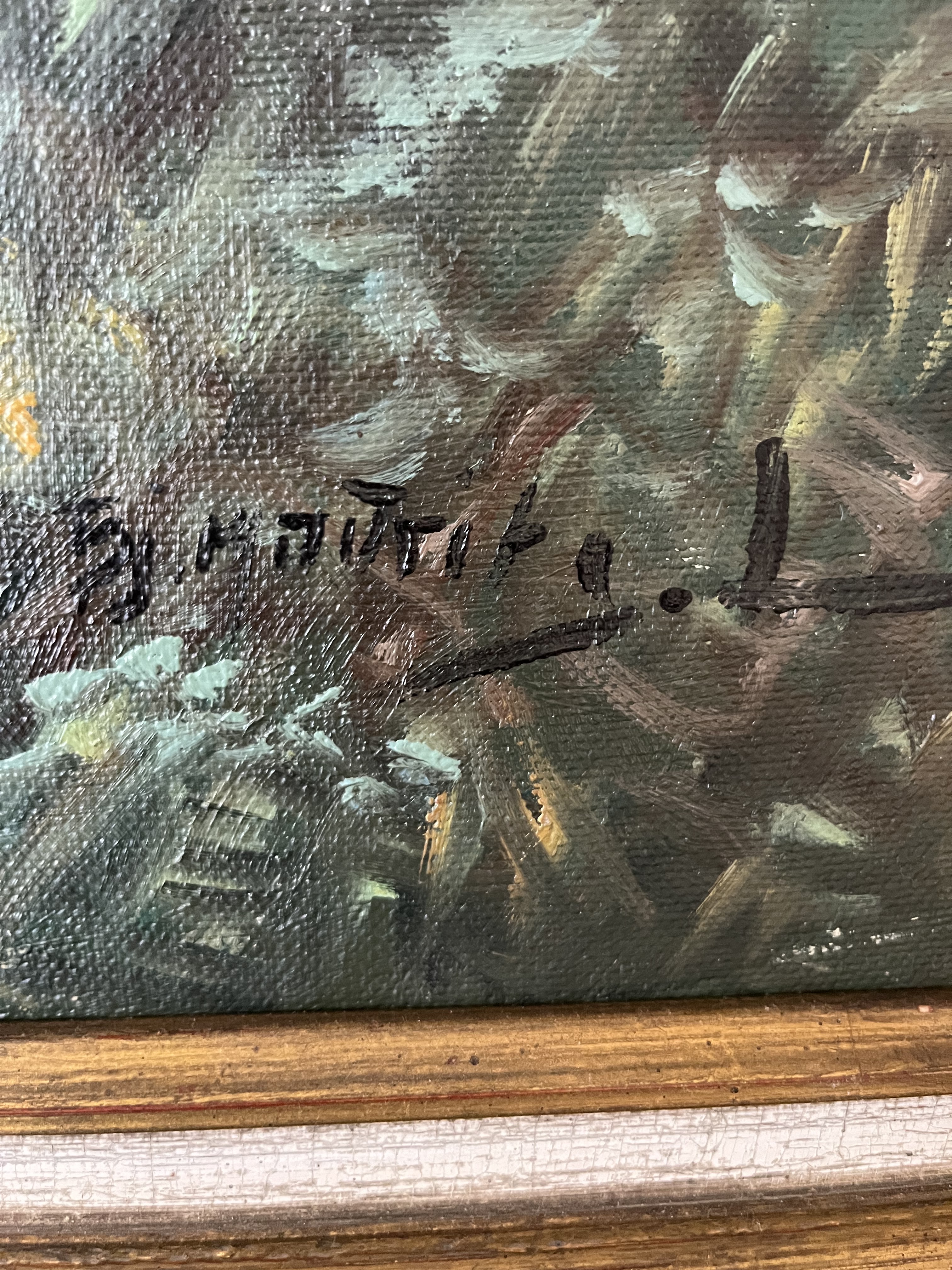 Noen som kan hjelpe meg å tyde denne signaturen? Jeg har ingen forhåpning om at bildet er av en kjent kunstner, men jeg liker det og det hadde vært artig å visst opphavspersonen.