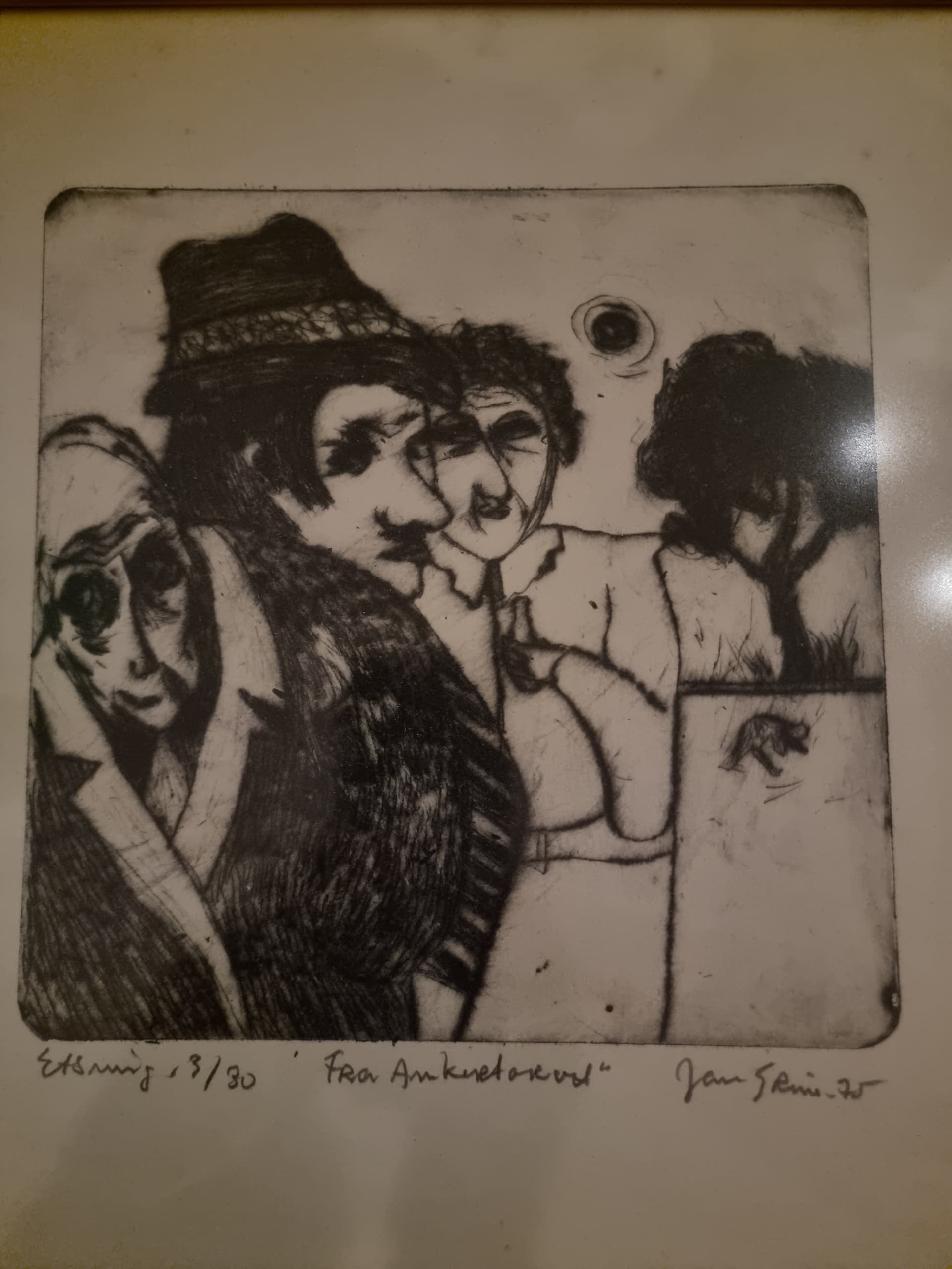 Hei. Vi har denne etsningen âFra Ankertorvetâ (nr.3 av 30) fra 1975. Klarer ikke helt Ă„ tyde signaturen. Noen som vet? Og eventuell verdi?