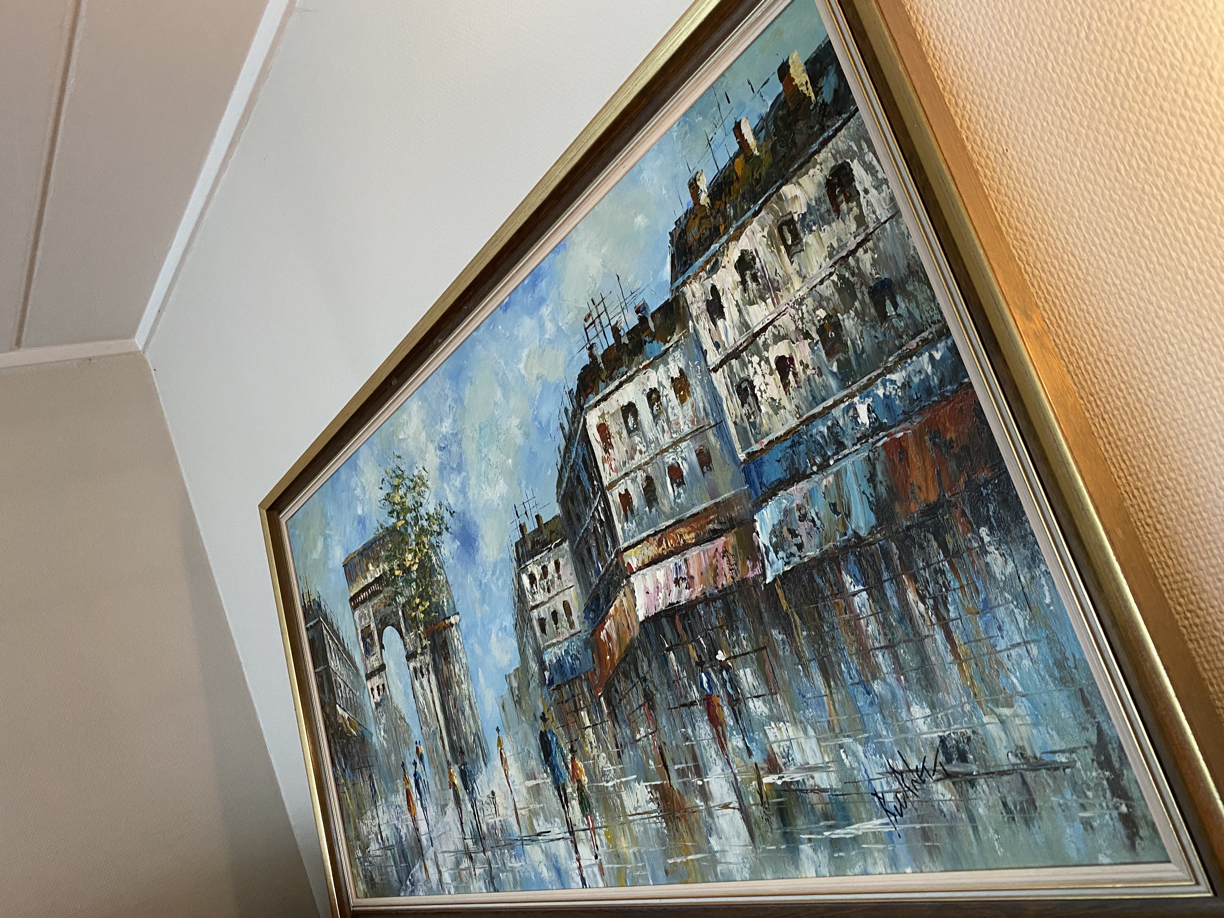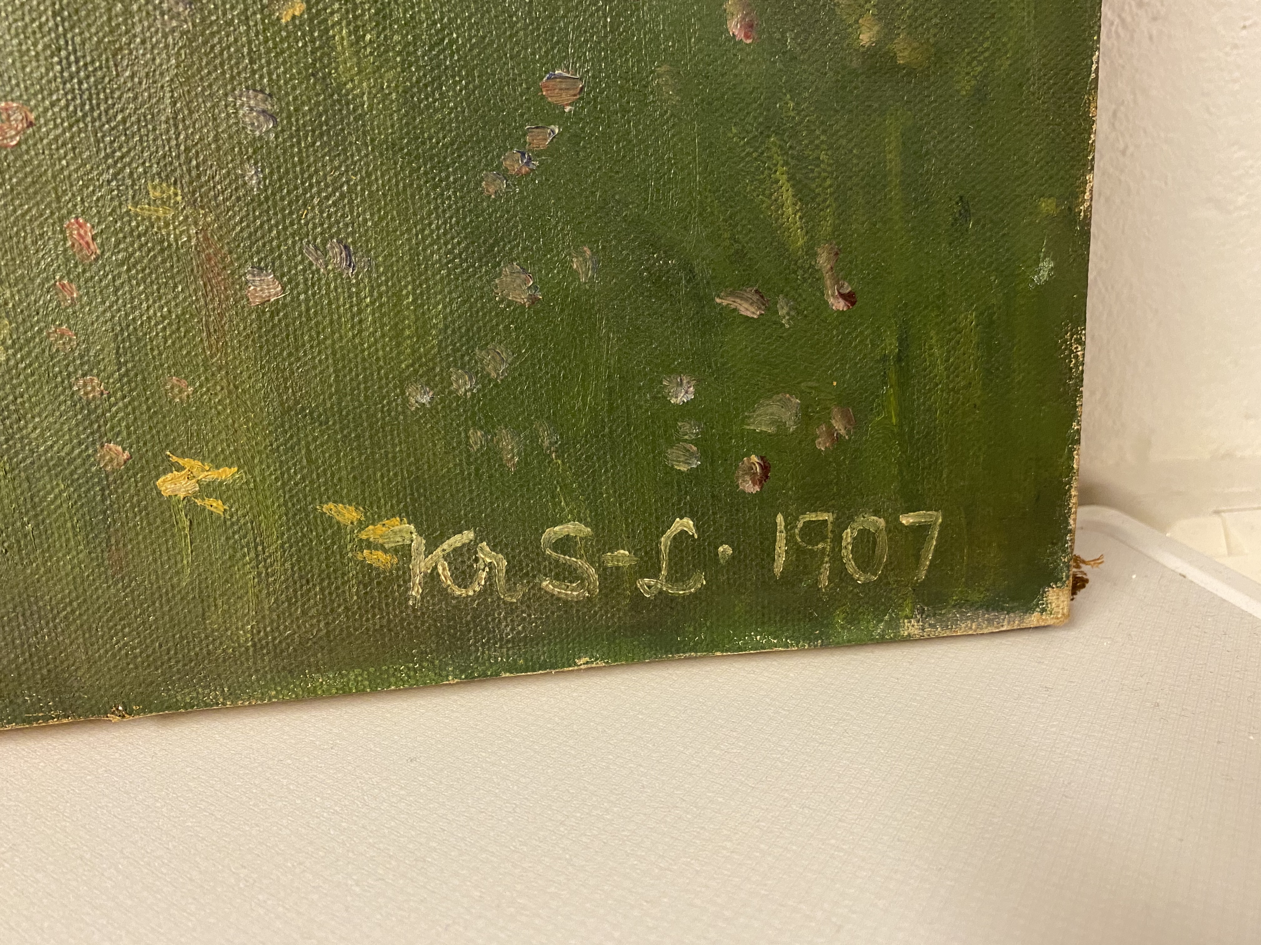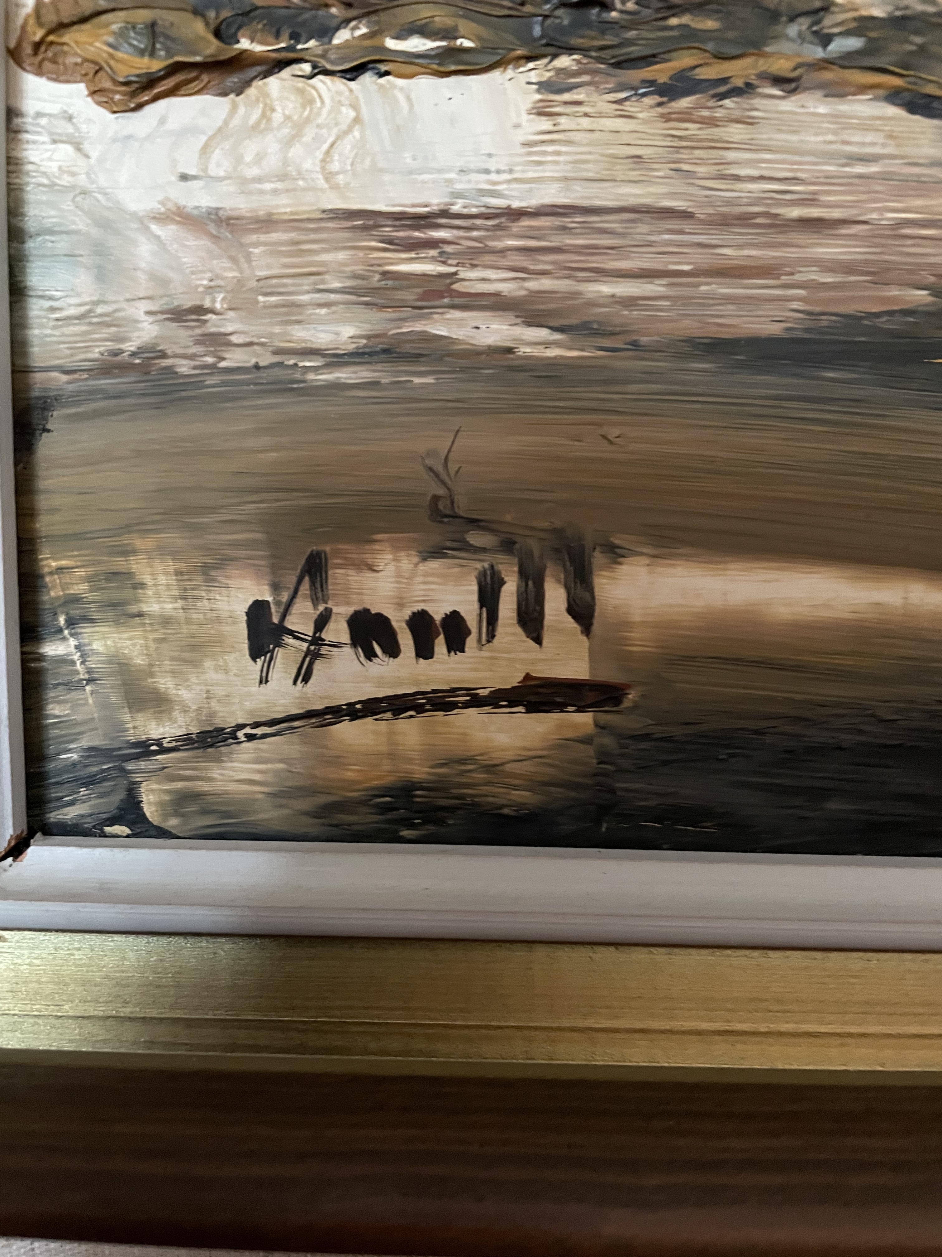 Jeg har mottatt to maleri i arv og lurer pĂ„ om det er noen av dere som kan hjelpe meg med Ă„ fĂ„ litt informasjon og en prisantydning pĂ„ disse. Ănsker til slutt Ă„ kunne fĂ„ solgt disse da jeg aldri kommer til Ă„ bruke disse selv. Dette er det andre maleriet.