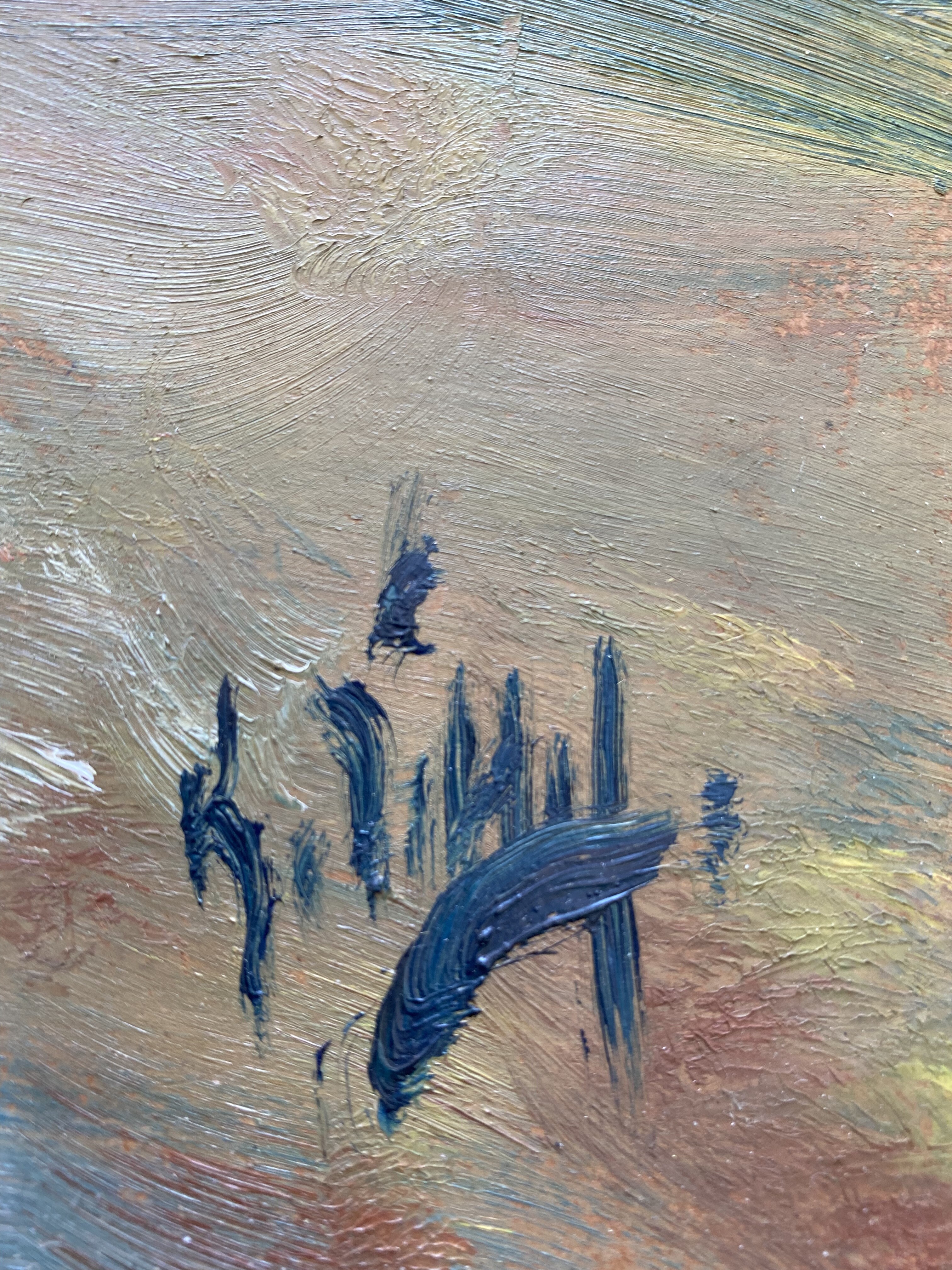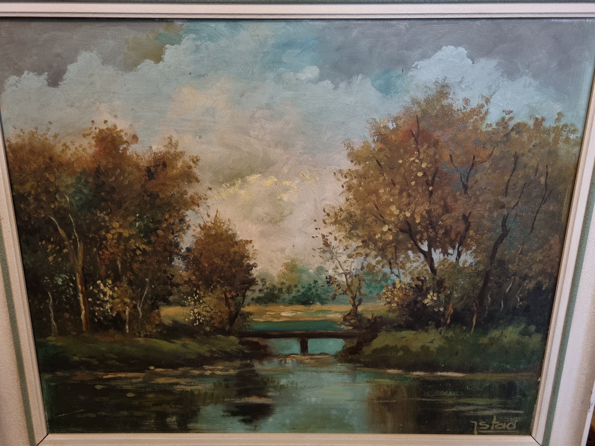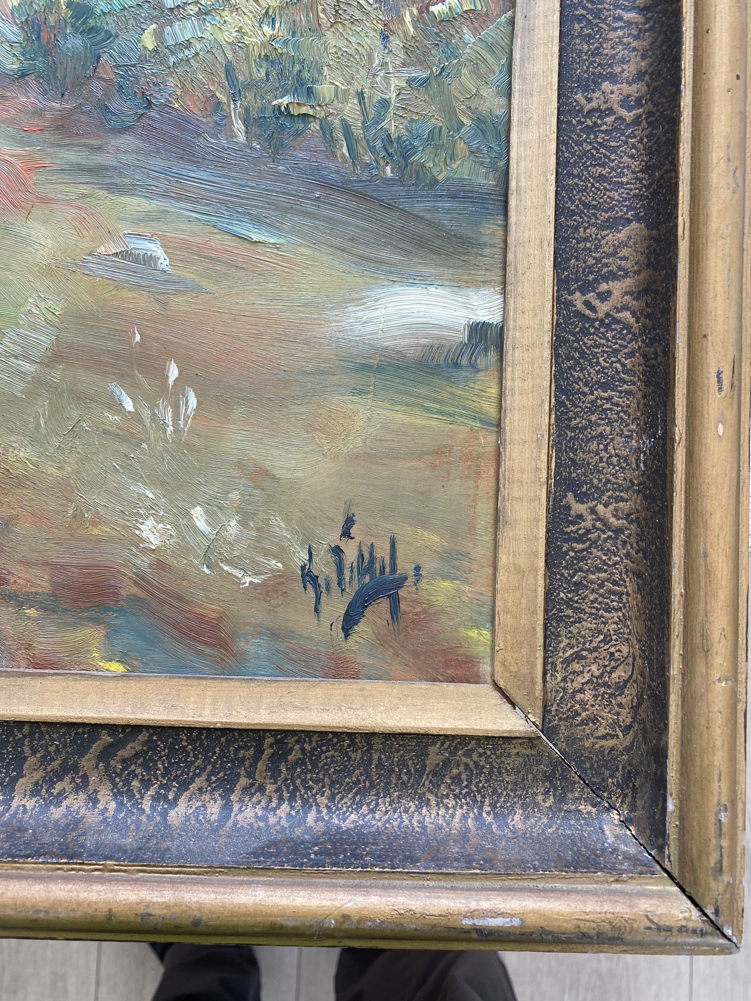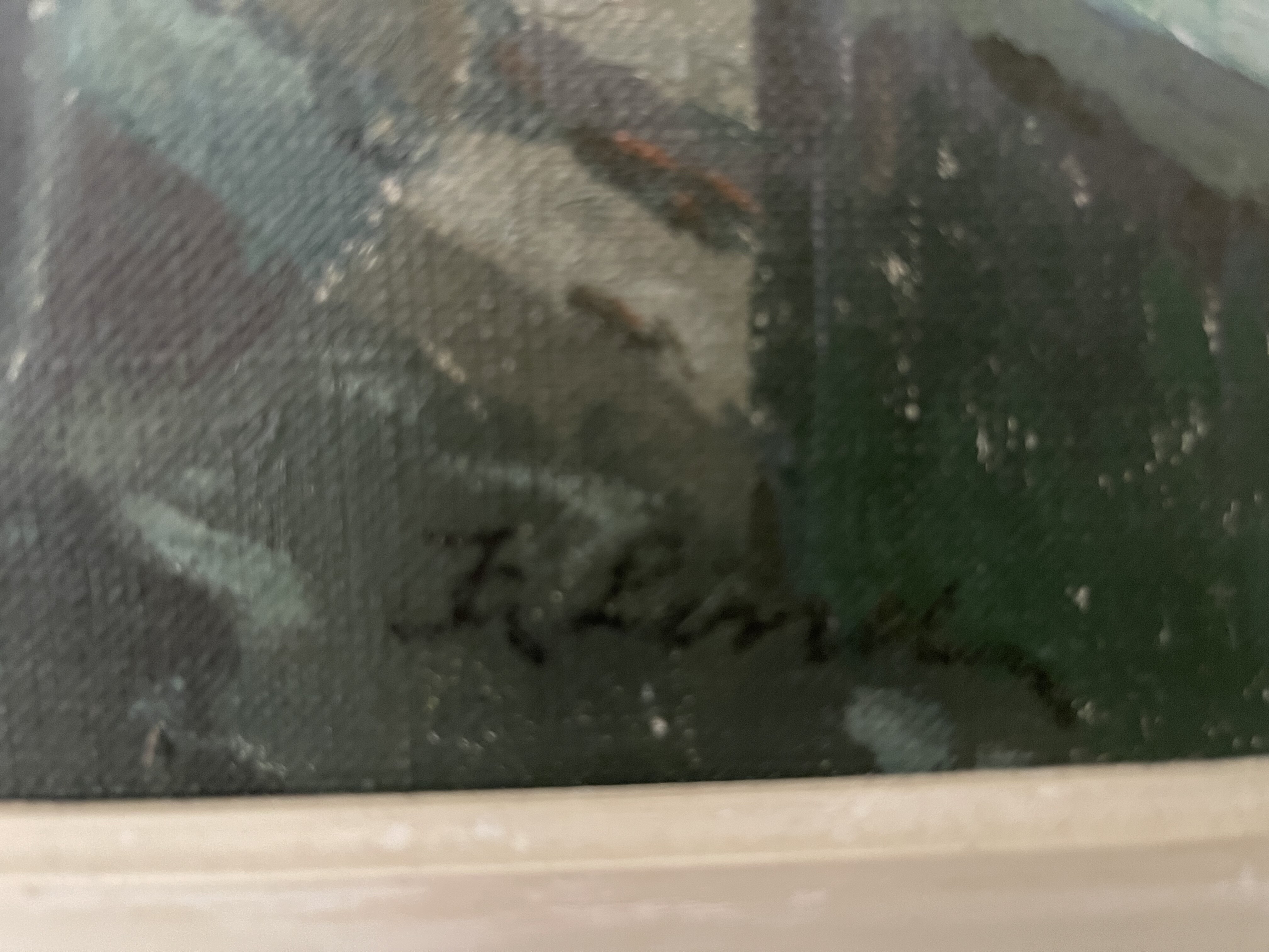 Jeg har mottatt to maleri i arv og lurer pĂ„ om det er noen av dere som kan hjelpe meg med Ă„ fĂ„ litt informasjon og en prisantydning pĂ„ disse. Ănsker til slutt Ă„ kunne fĂ„ solgt disse da jeg aldri kommer til Ă„ bruke disse selv. Dette er det andre maleriet.