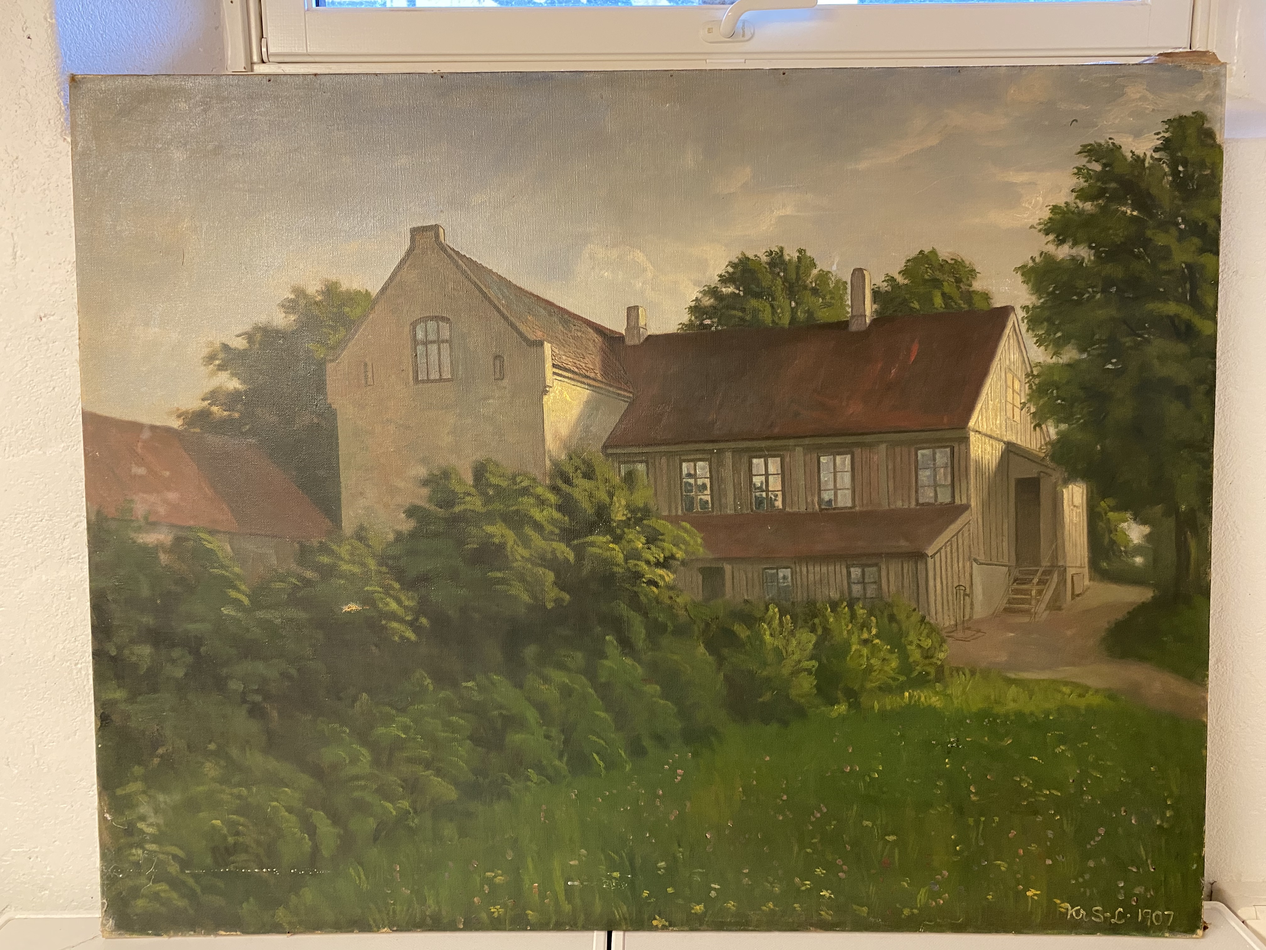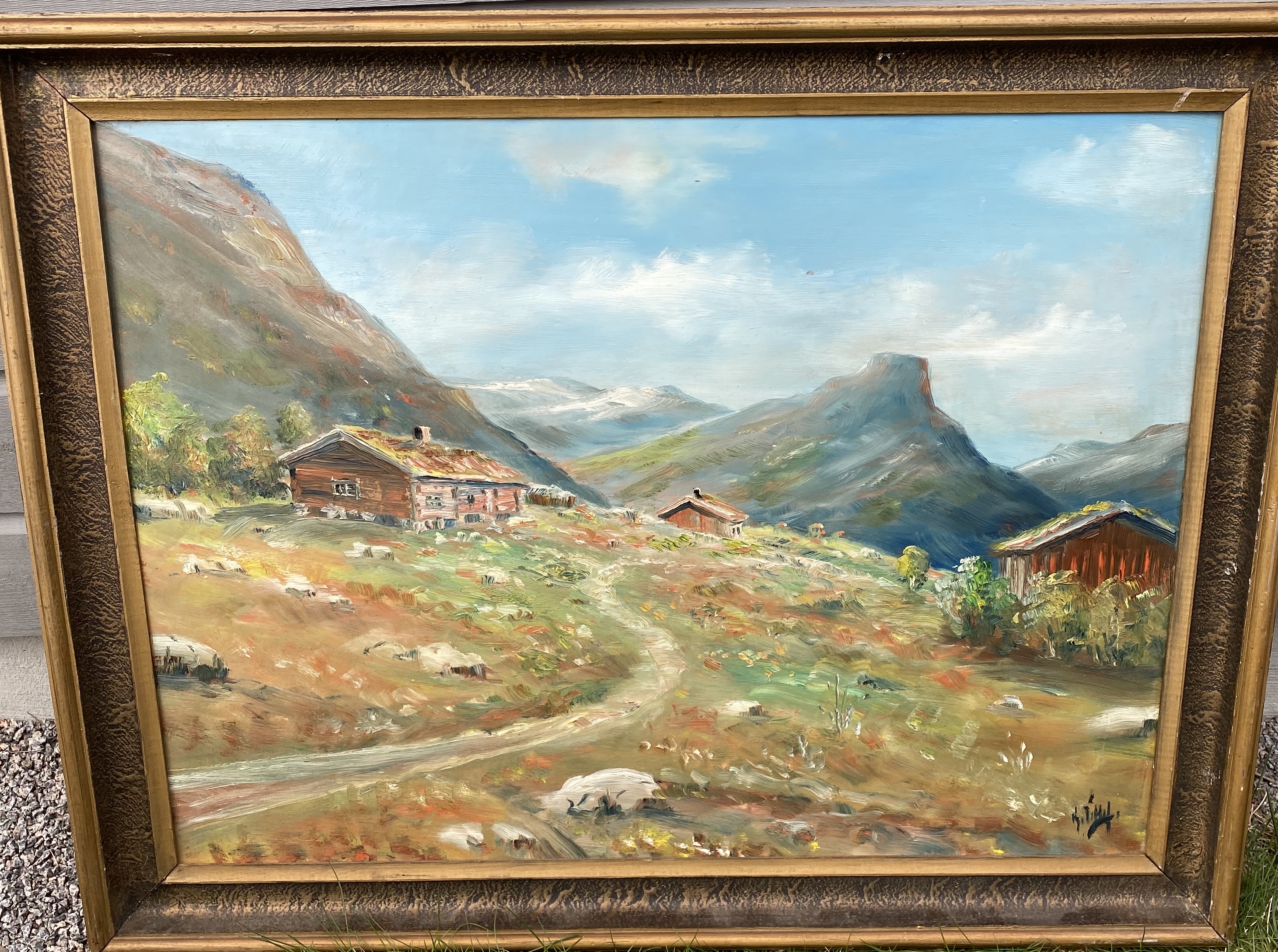 Jeg har mottatt to malerier i arv og lurer pĂ„ om det er noen av dere som kan hjelpe meg med Ă„ fĂ„ litt informasjon og en prisantydning pĂ„ disse. Ănsker til slutt Ă„ kunne fĂ„ solgt disse da jeg aldri kommer til Ă„ bruke disse selv. Dette er det fĂžrste maleriet av to.