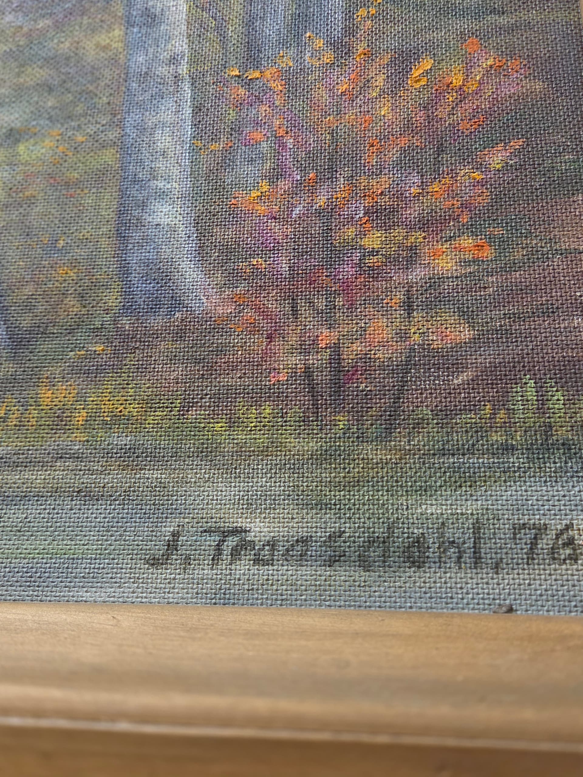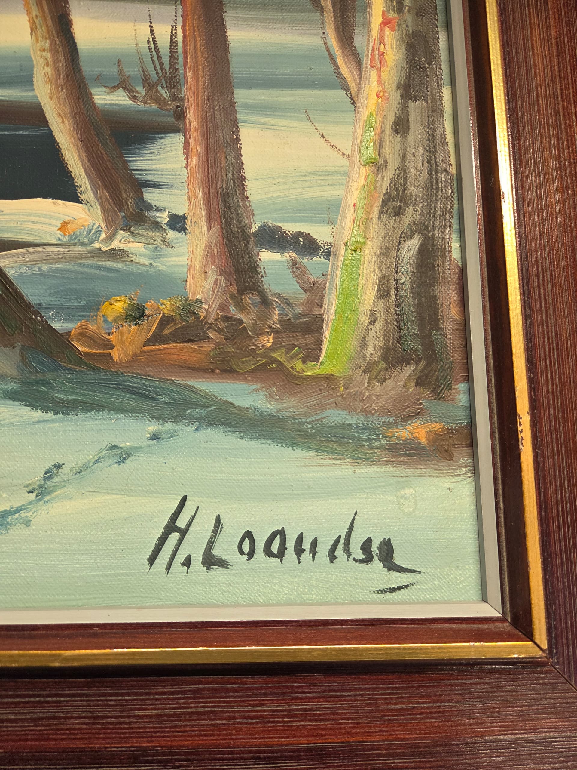 Hei er det noen som vet hvem som er kunstneren? KjÞpt i Trondheim pÄ 70- tallet tipper jeg. Har arvet det av mine foreldre. Signaturen er ikke sÄ lett Ä tyde; L. Sumi kanskje? Kostet 4.700 kr stÄr det pÄ baksiden.