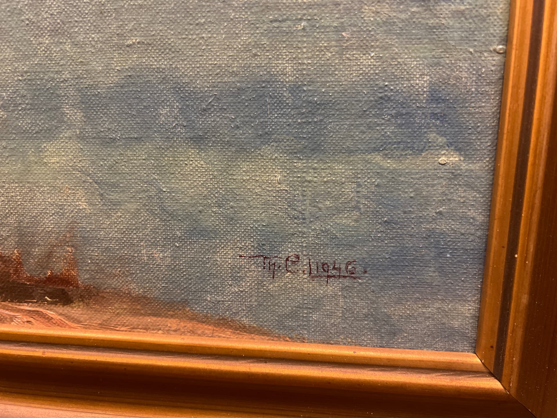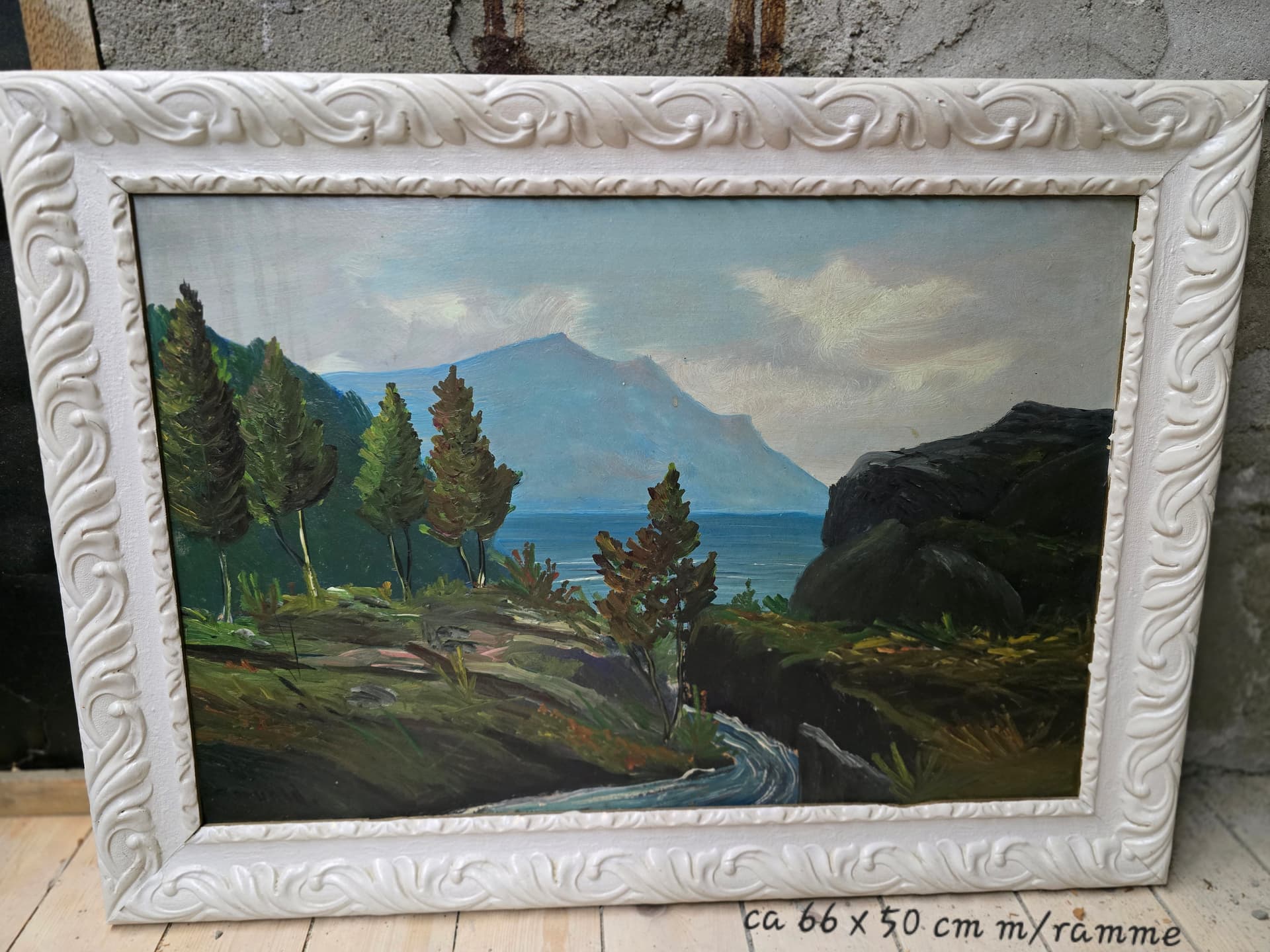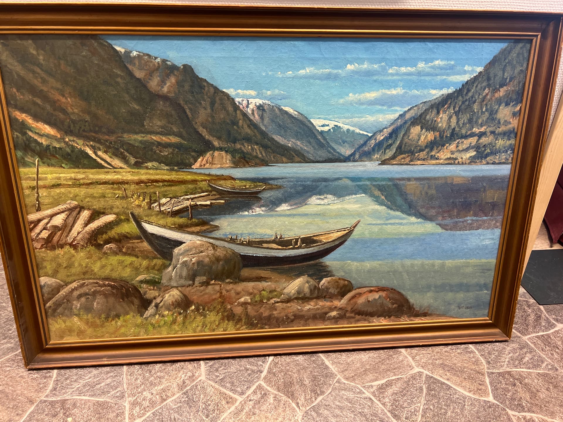 Det ble kjÞpt da motivet er samme utsikt jeg nÄ ser fra leilligheten over 100 Är frem i tid. Jeg har dog blitt mer nysgjerrig pÄ hvem kunsteren kan vÊre? Ser ut til Ä vÊre noe med L, muligens Lars noe