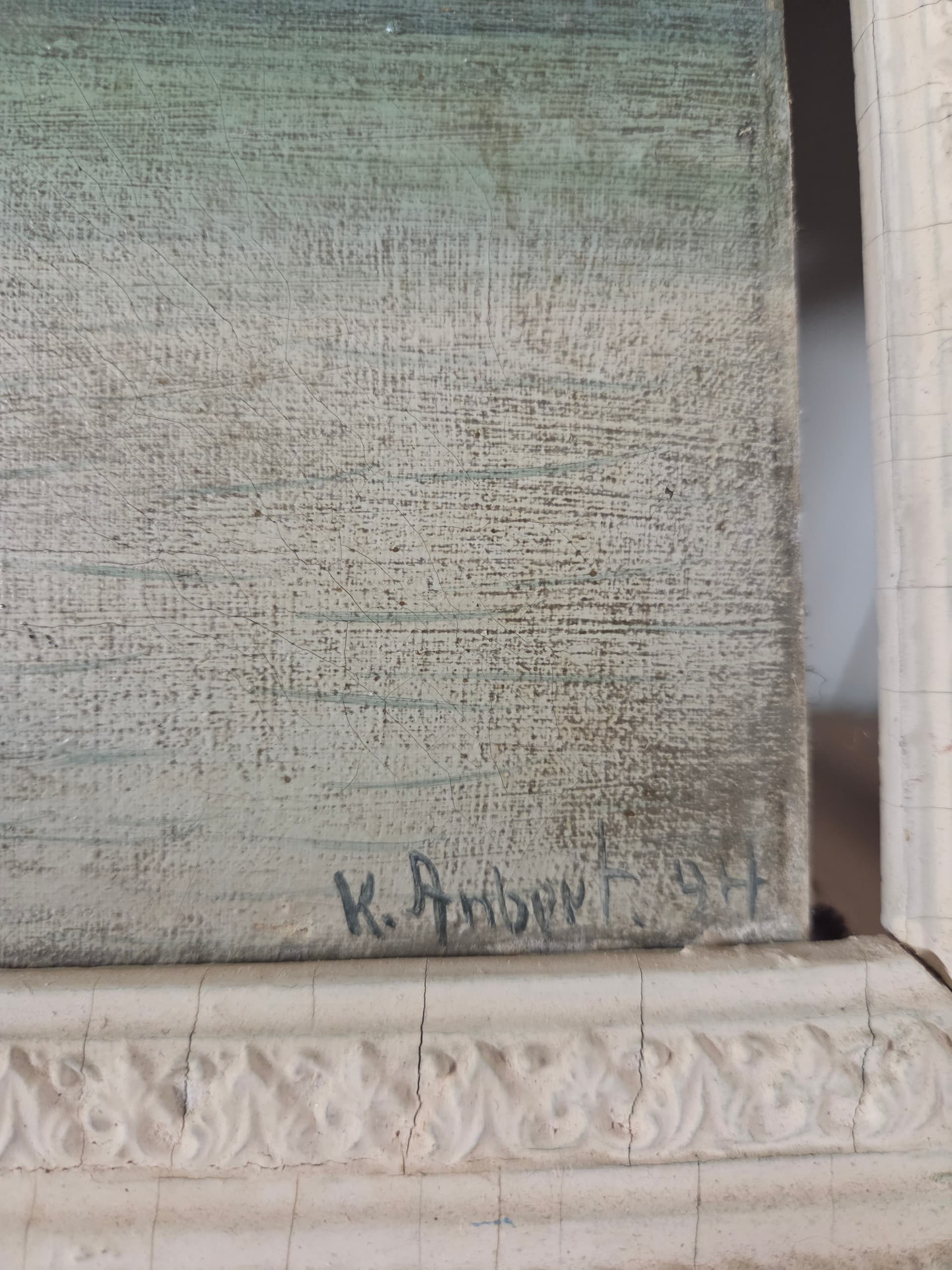 Hei. Vet at det er noen Är siden du postet. Men sÄ den fÞrst nÄ. Dette bildet er laget av Frank Robert Timenes f: 1950- d: 2015. Han var fra Kristiansand. Han hadde mange utstillinger pÄ 80 og 90 tallet. Og var en lovende kunstner den gang.