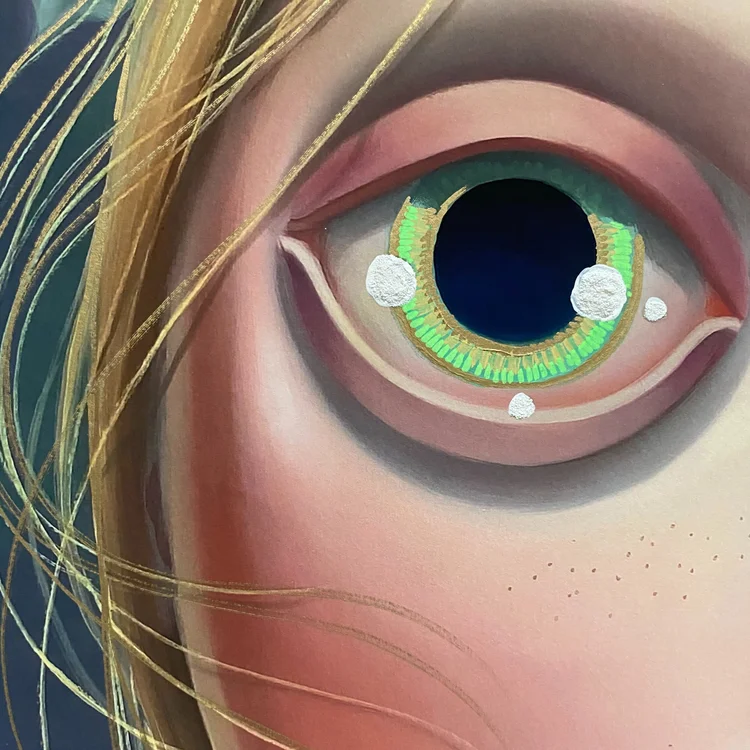 Each hand embellished edition is uniquely painted by the artist with acrylic paints - no two are the same. All editions feature similar hand painted embellishments throughout work including detailing to the figureâs hair and eyes, as well as additional detailing to the background of the image.