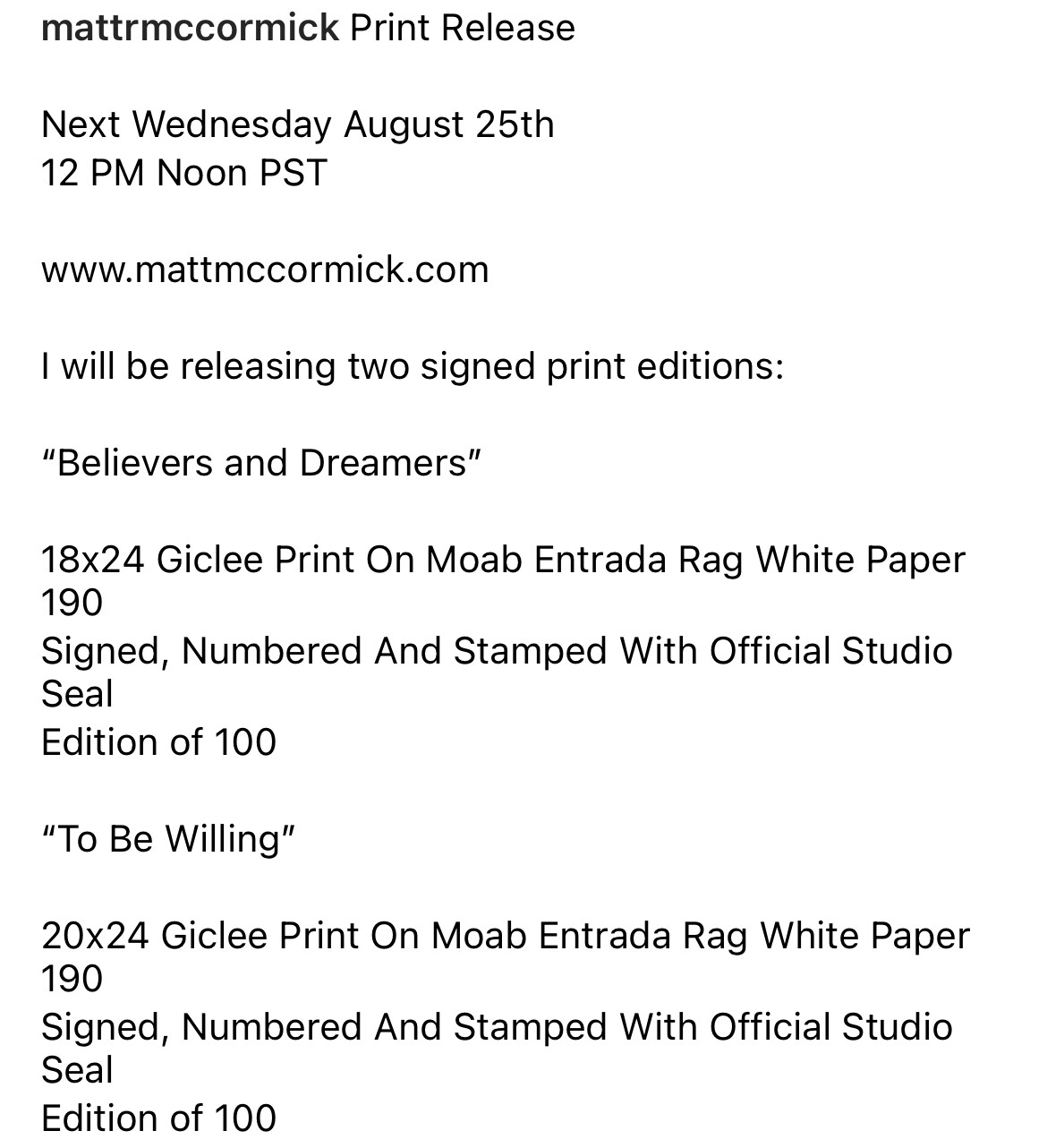 register now for your chance to purchase this screen print.