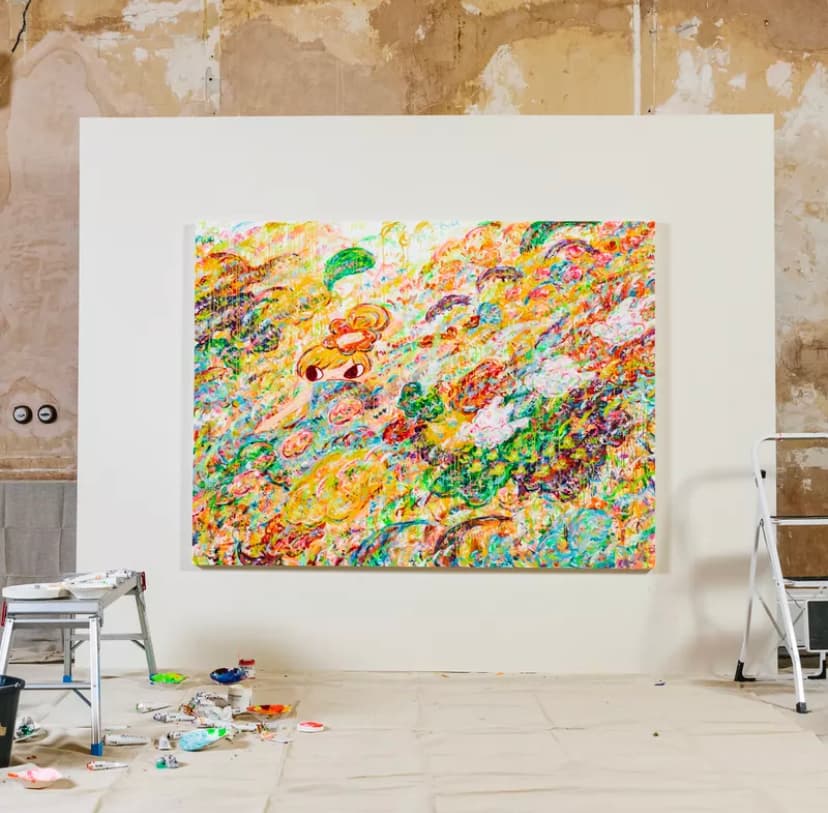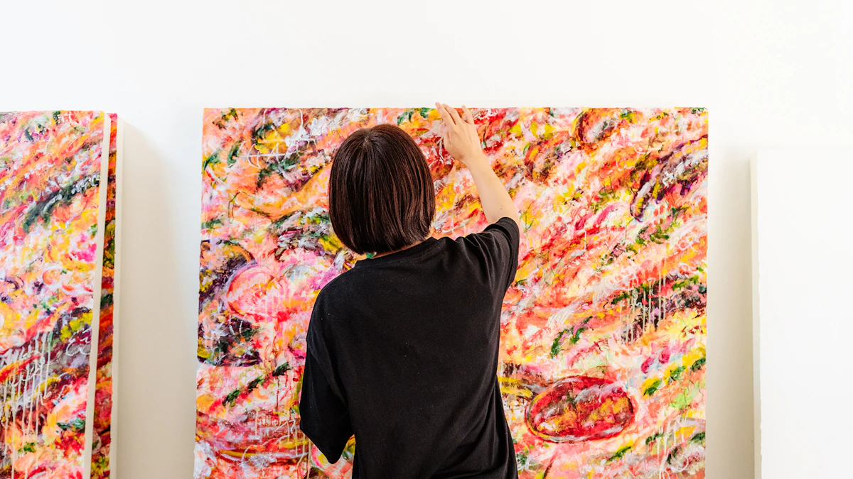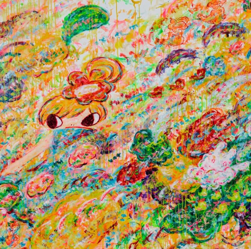 DIMENSIONS 26 x 26 in MEDIUM Acrylic paint, pencil crayon, Japanese origami paper and archival pigment print on Hahnemuhle museum etching paper