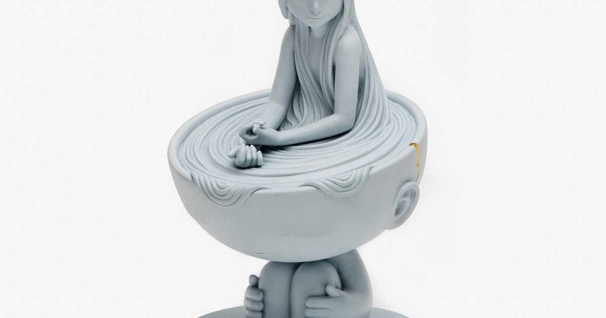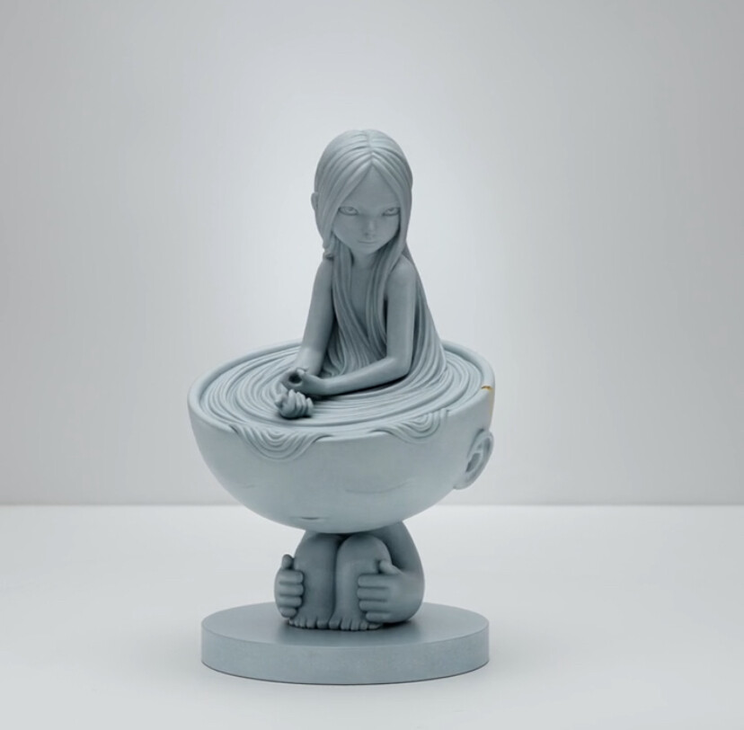Bronze with a blue/grey flecked patina finish and gold leaf details.