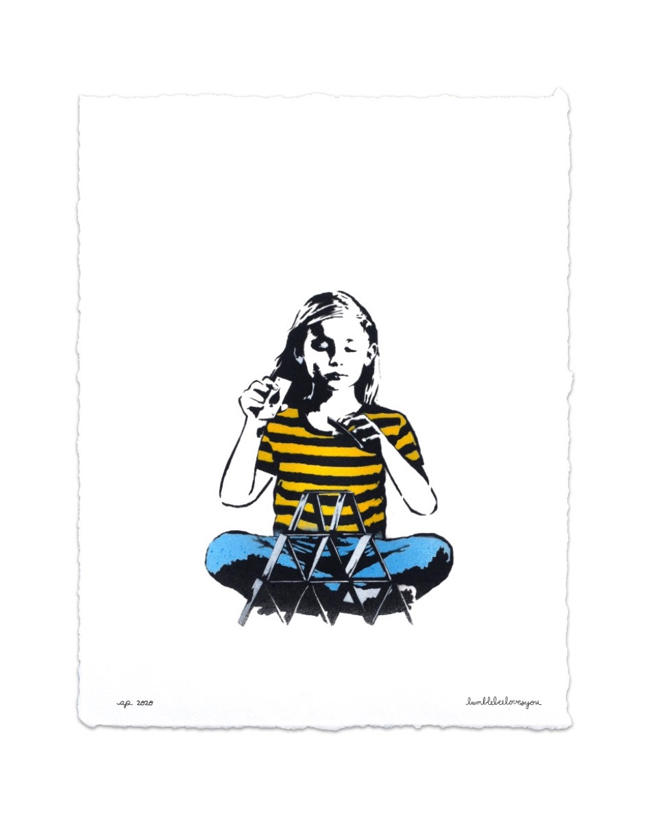 3 Color Stenciled Spray-Paint & Archival Ink on 290gsm Coventry Rag Paper + Deckled Edges