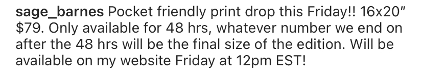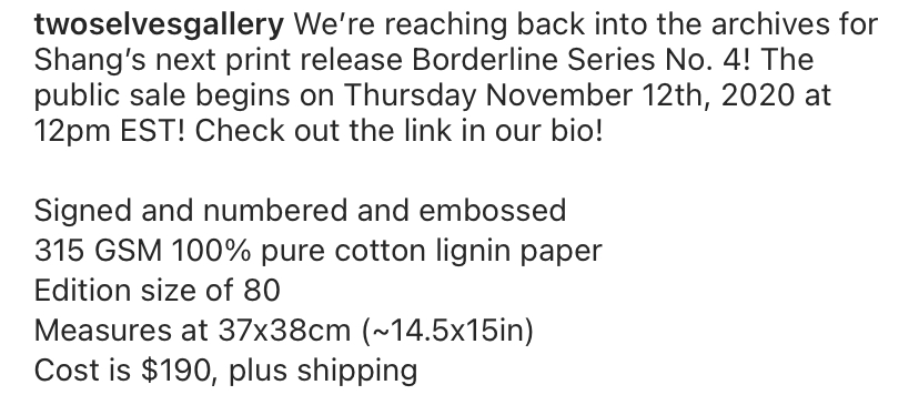 Lady with an Axolotl will be available for 24 hours starting at 8:00 AM PST on Tuesday, November 17 and ending at 7:59 AM PST on Wednesday, November 18. The edition is limited by the number of prints sold during those 24 hours and never reprinted.