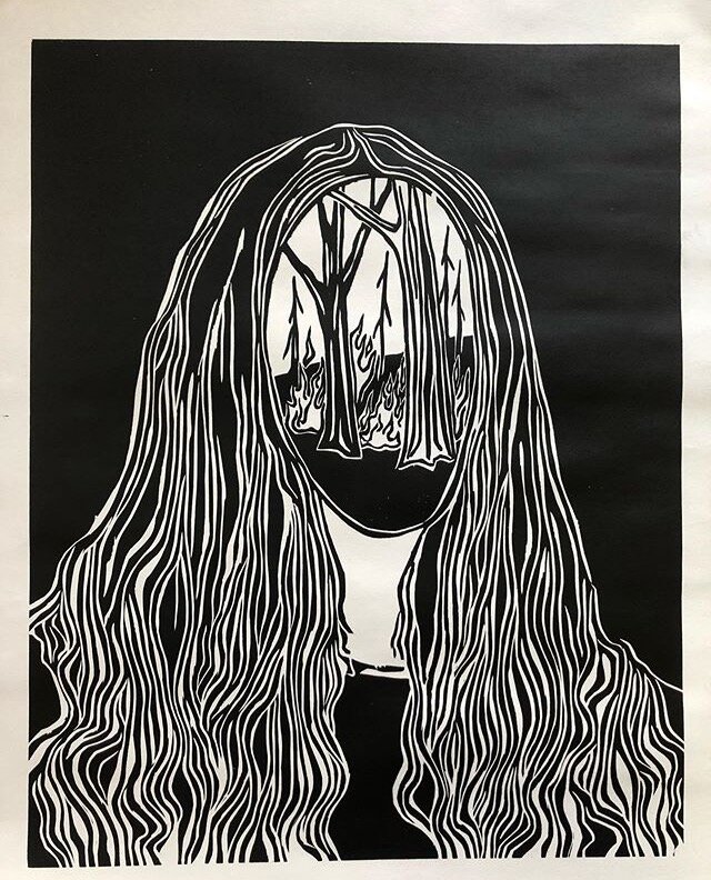 Woodcut print, timed edition (Nov 9 - Nov 15 2020), 20 x 16 in., ink on heavy newsprint.