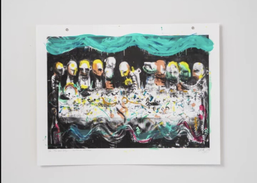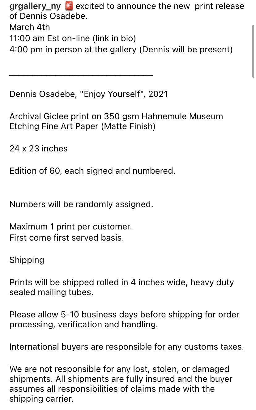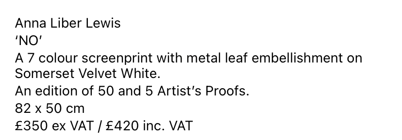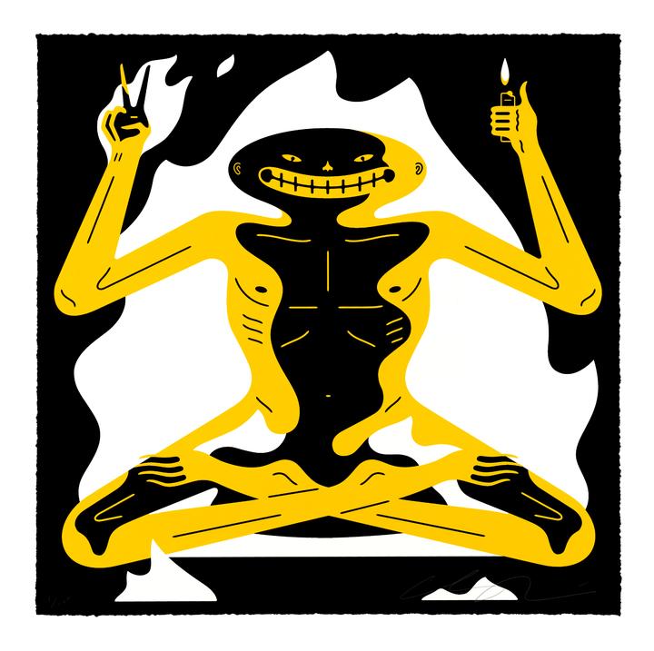 Hand-pulled 16 x 16” black and Yellow screen print. Printed on 290gsm Arches Rag paper with deckled edges. Each print is signed and numbered. Limited edition of 100.