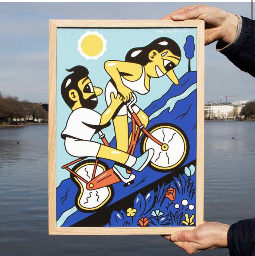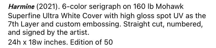Medium: 15 colour screen print and lithograph, with unique hand finished elements in gouache and acrylic paint, on Somerset 410gsm satin paper.