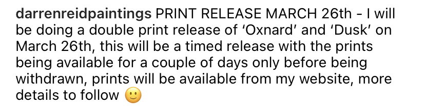 Edition of 35: Signed, dated and numbered