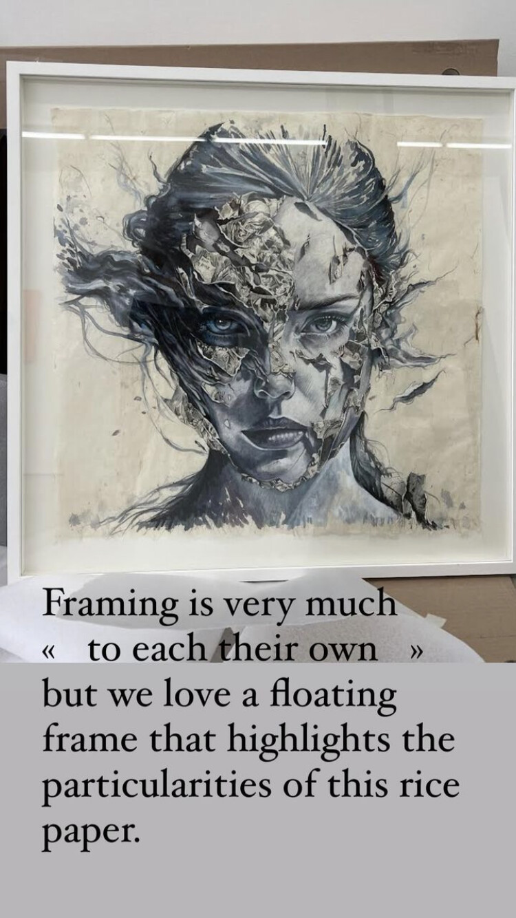 Rispapir er skjøre greier. Det krever en helt spesiell teknikk for å ramme dette inn korrekt, slik det gjøres i Japan. Jeg vet ikke prosessen, men har sett resultatet hvis det gjøres feil. Skjolder og bretter over det hele. Kan gå galt hvis dette leveres inn til en uvitende rammemaker ![]()