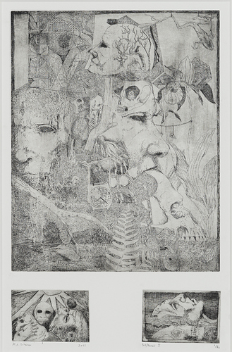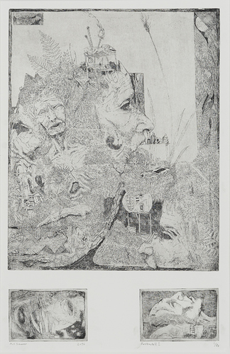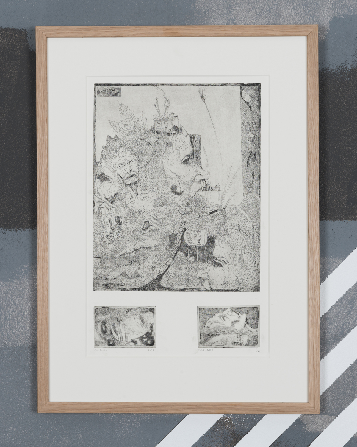 Koldnålsradering er at man skraper inn motivet i platen som skal trykkes med. Disse platene slites fortere enn en streketsning og man vil derfor se forskjeller i trykkene etterhvert som man bruker platene mye. De mindre motivene er laget på denne måten.