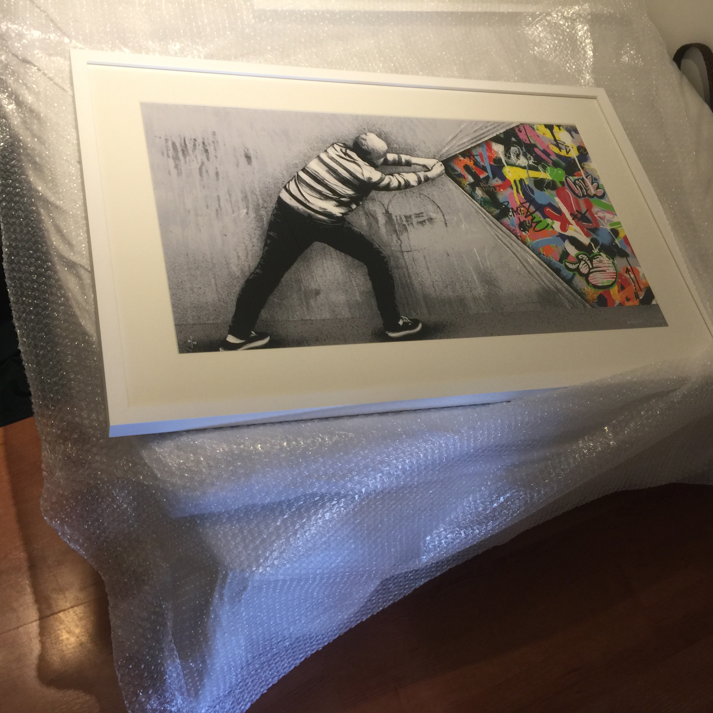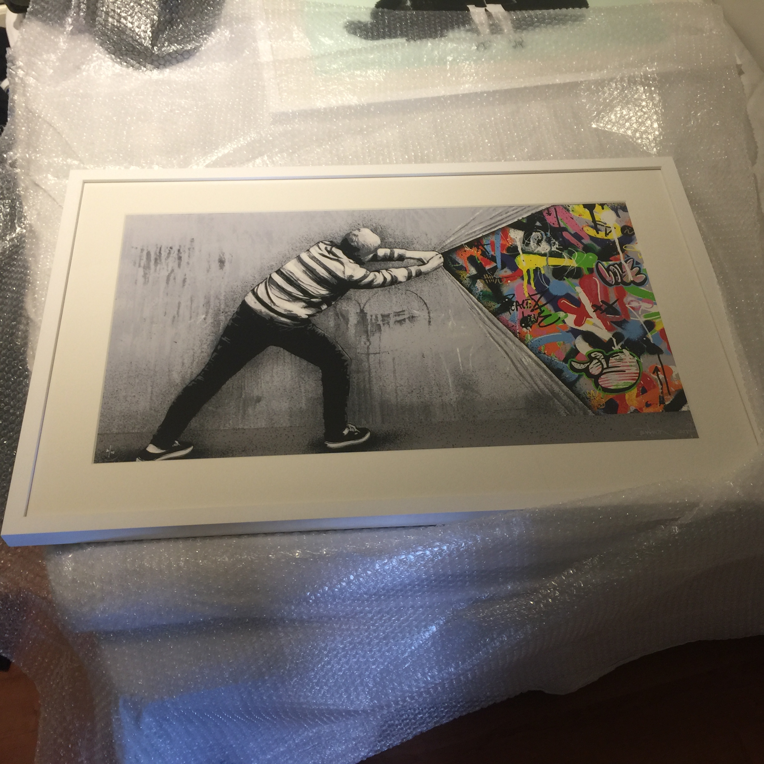 Har en Behind the curtain main ed. I hvit ramme for salg. Fortsatt pakket i bobleplast fra Rammeservice i Bergen.