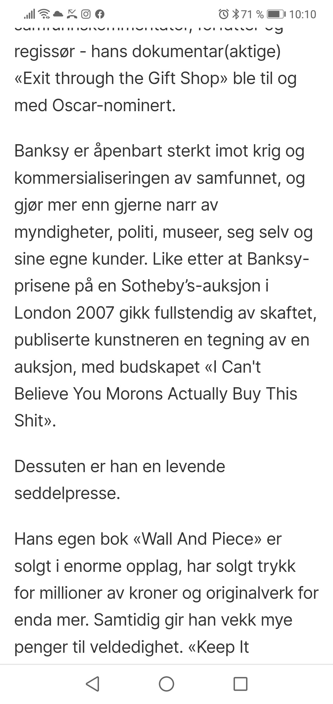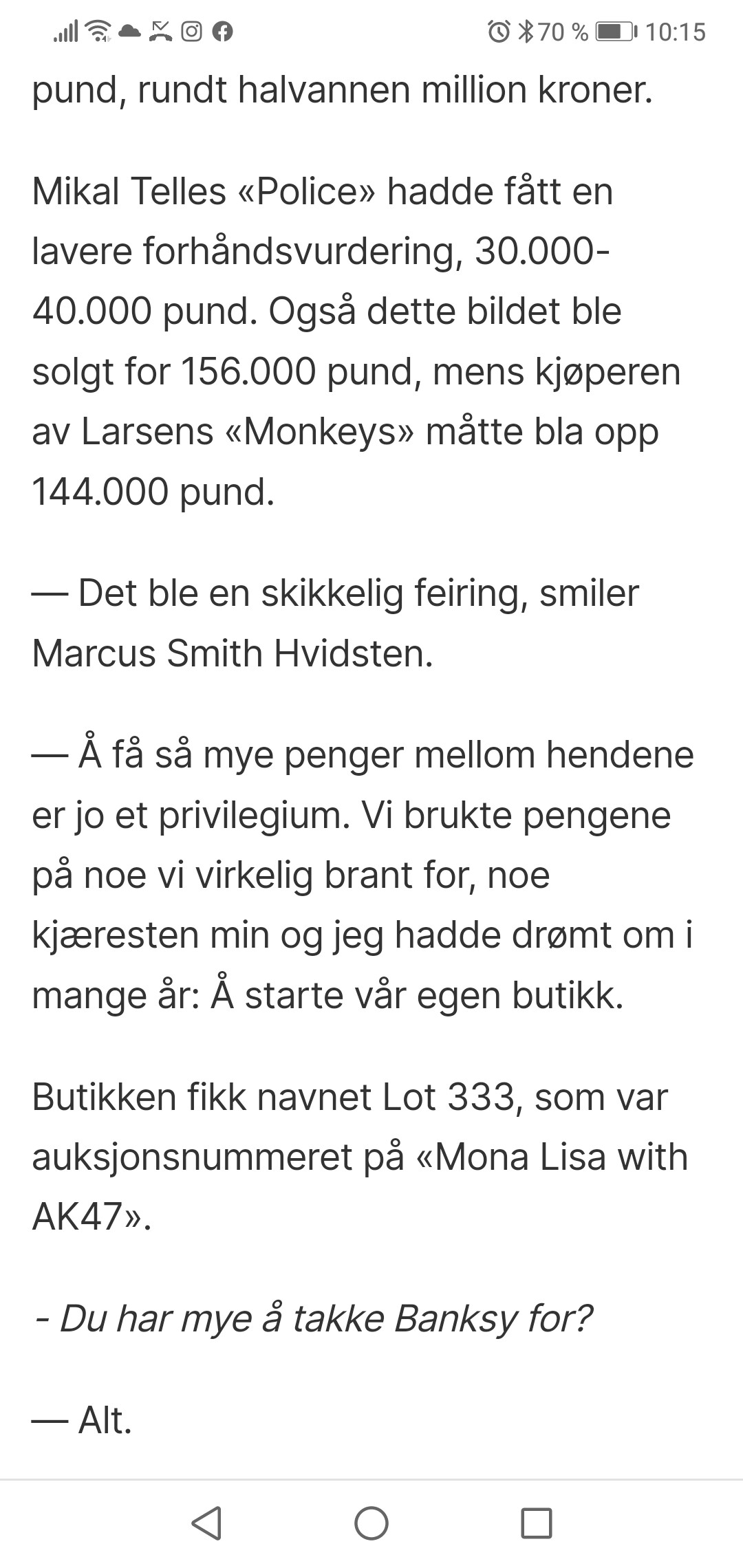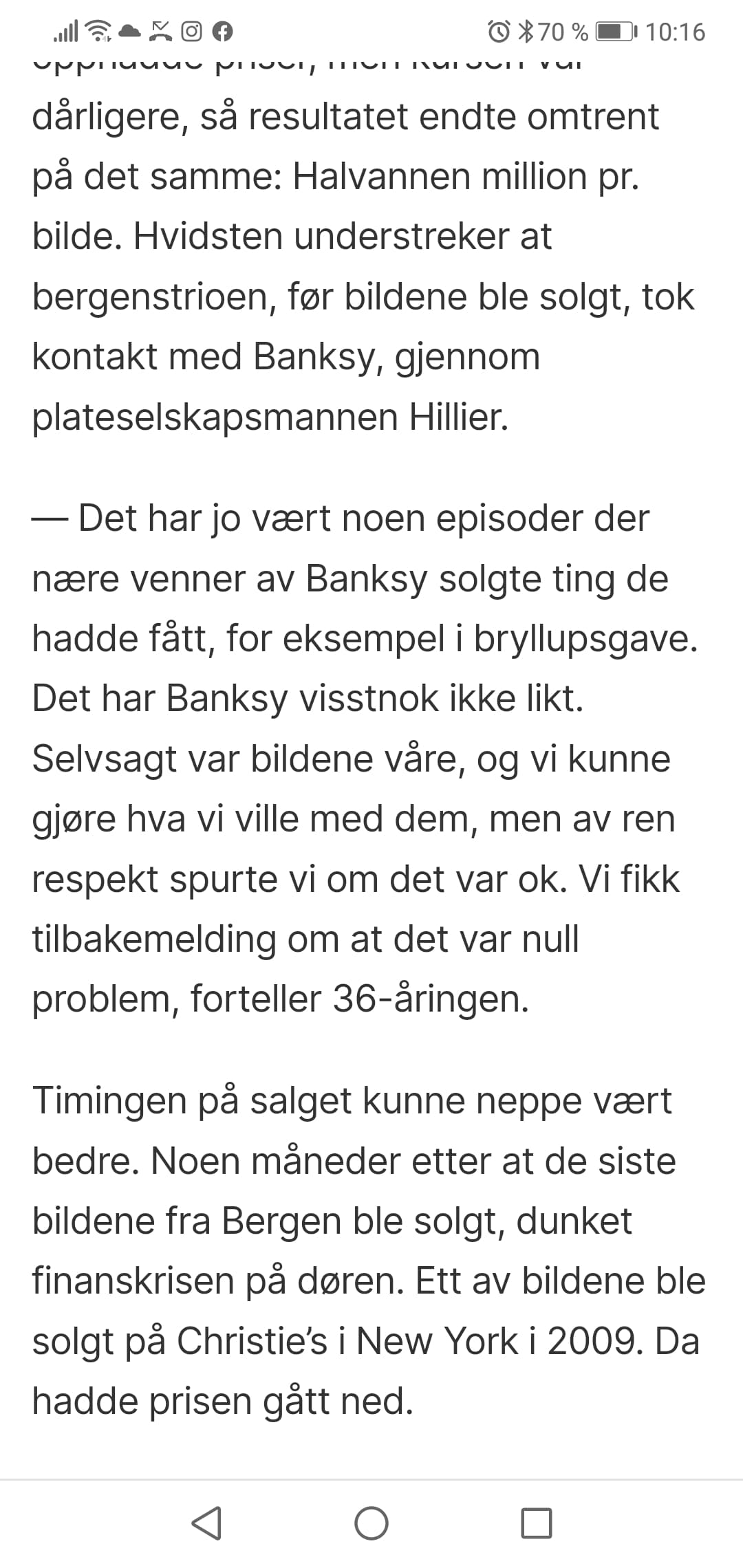 Blir spennende å se om Banksy noen gang kommer tilbake til Norge etter dette, ser ut til at det meste han ga bort er solgt nå