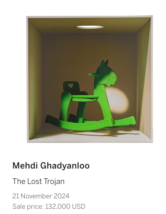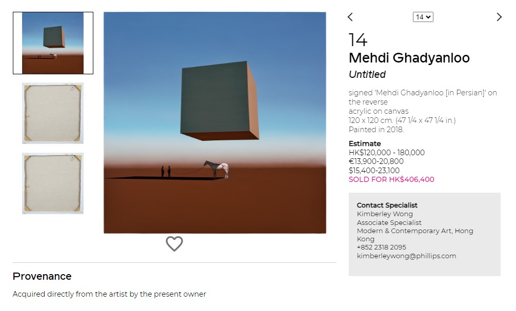 Mehdi har absolutt ikke nådd toppen. Alt blir solgt ut fra galleriene og jeg får ikke sett prisliste engang, for jeg er ikke er en viktig nok samler, eller et stort museum. Fra nå og utover blir det bare høyere og høyere priser. Så om en i det hele får muligheten til å kjøpe er dette det mest sikre en kan kjøpe etter min mening.