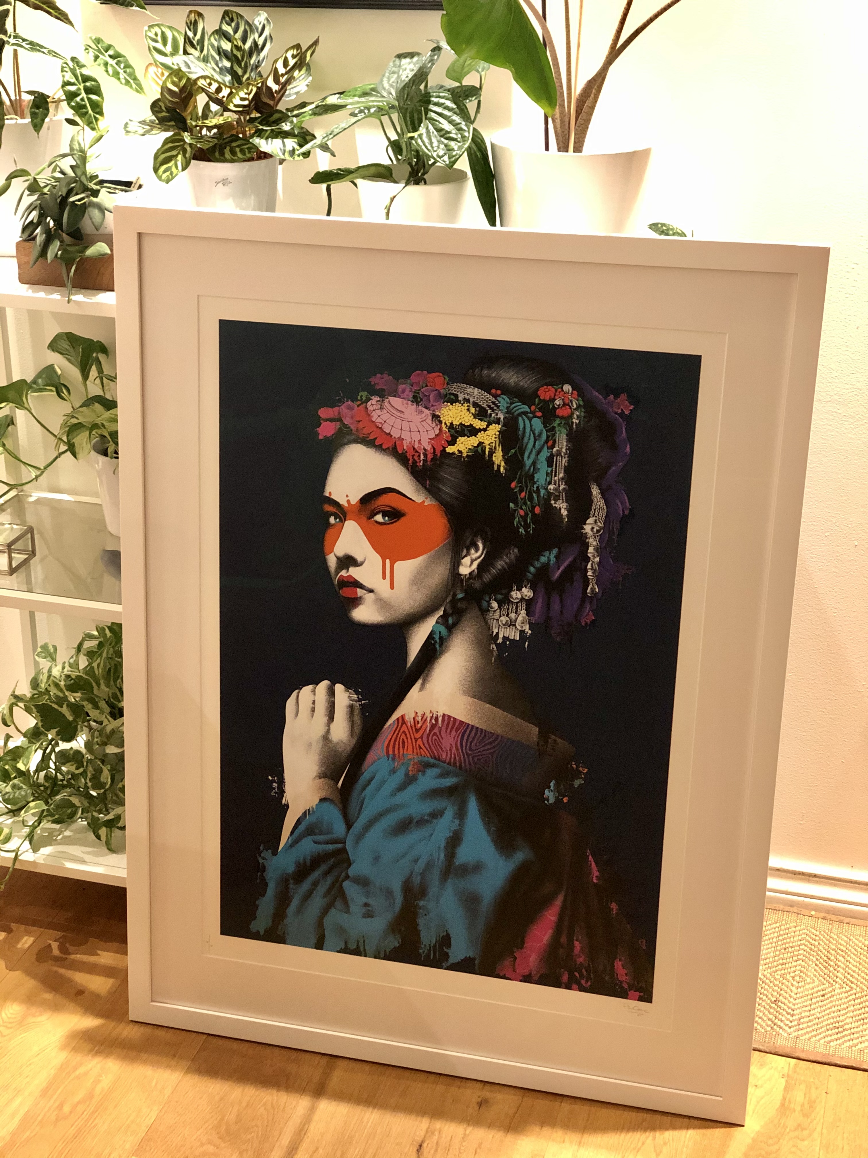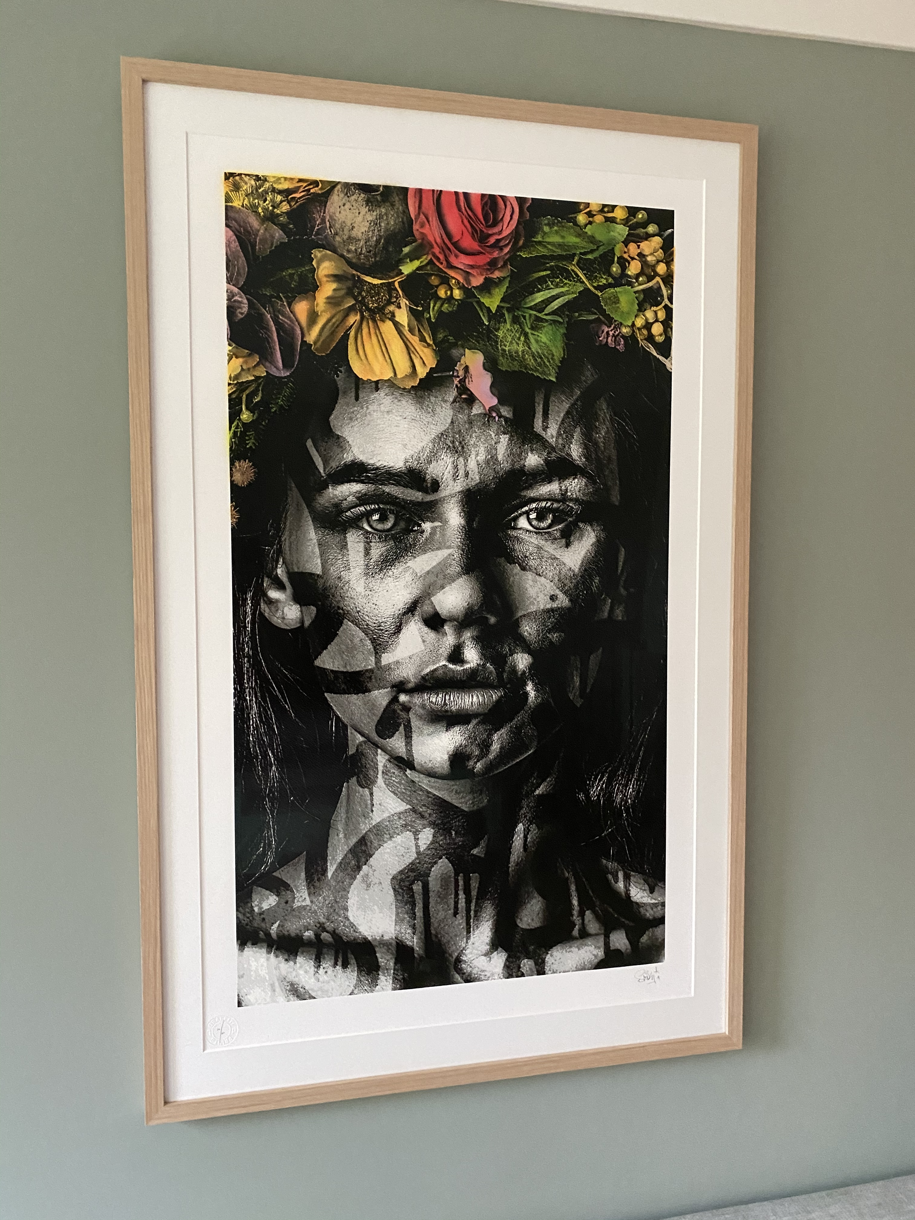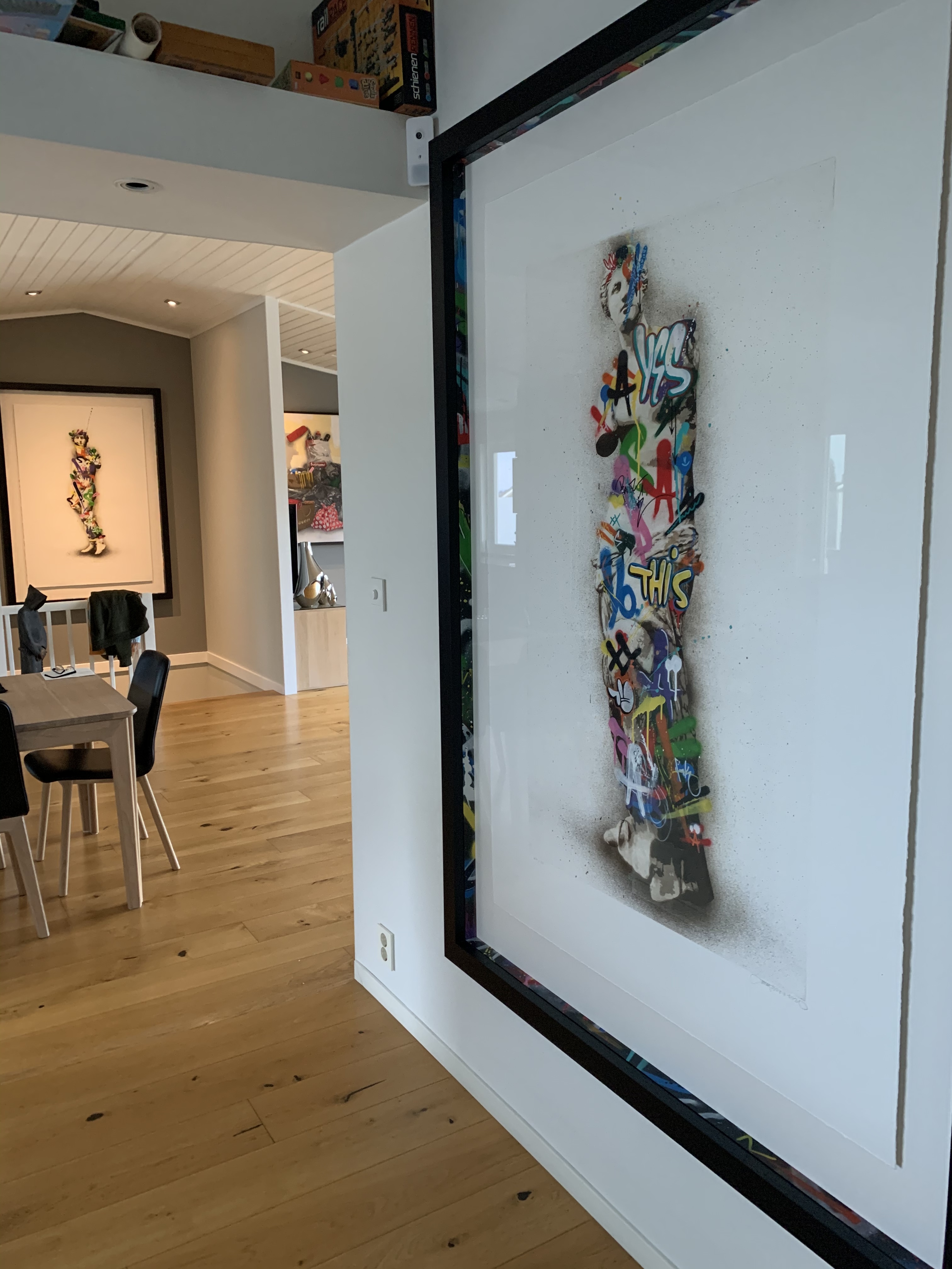 Elsker Darja Bajagić verket mitt! Tror denne skal rammes inn i en plexiglass boks. Noen som har god erfaring med å det noe sted? Verket skal festes til bakplaten med spiker.