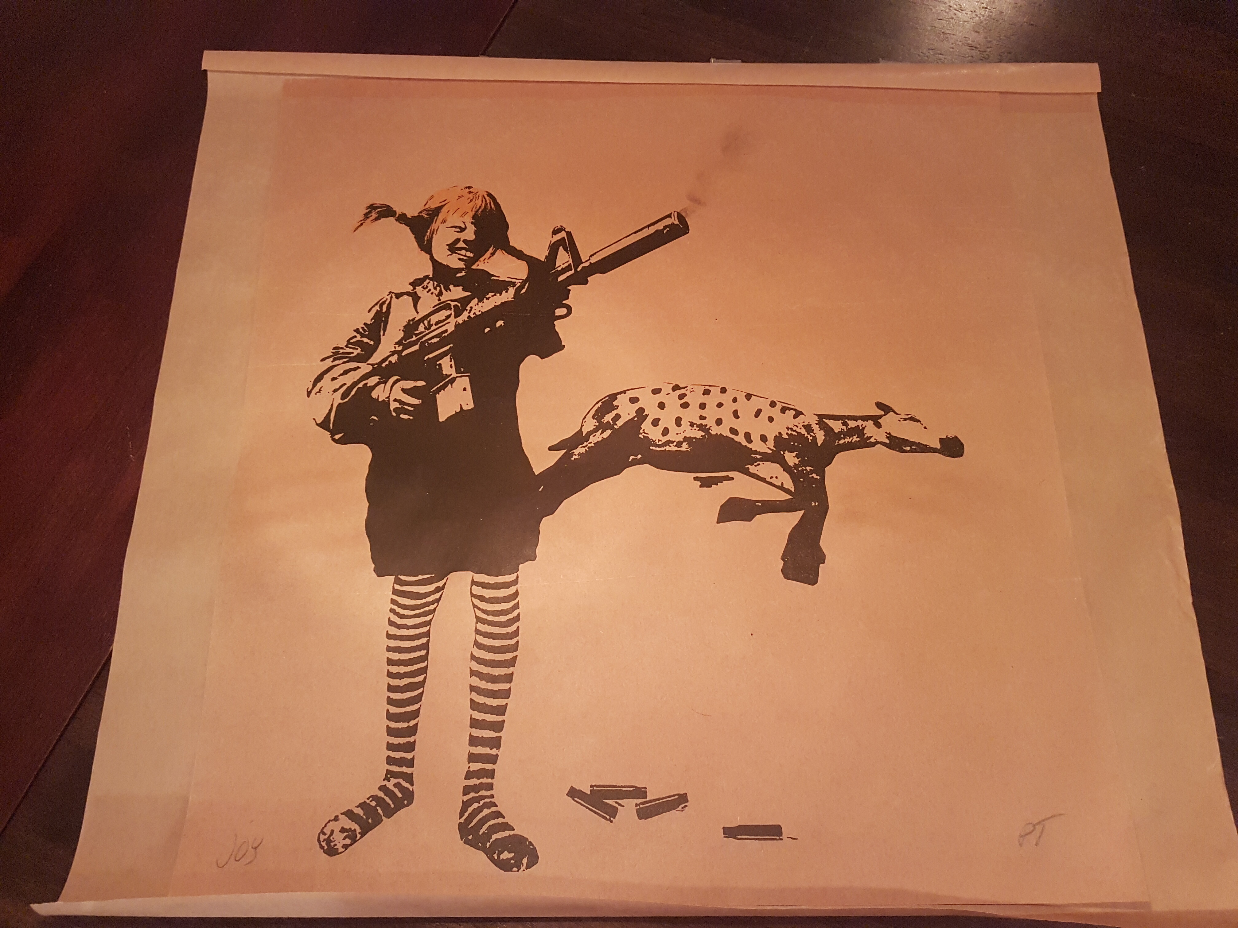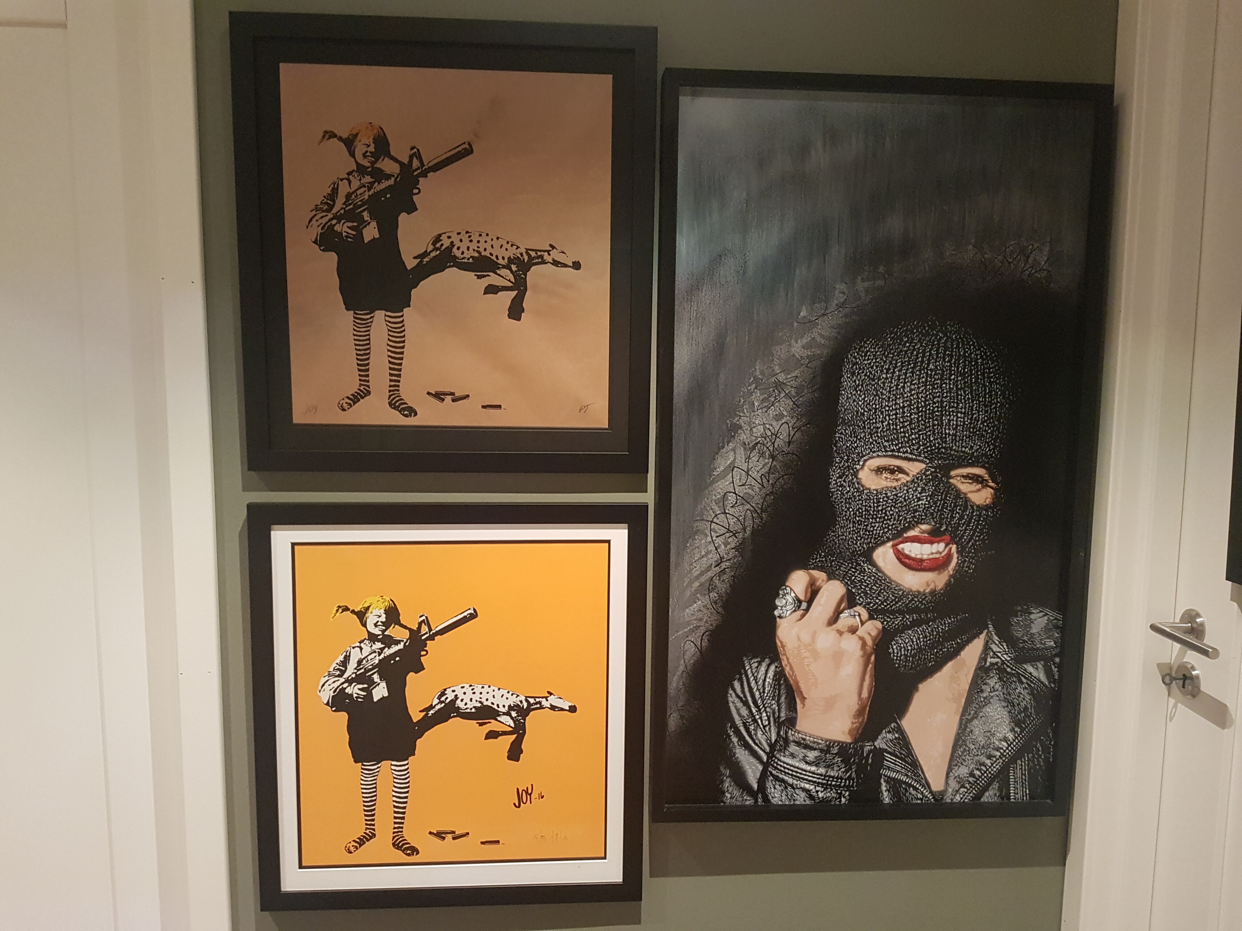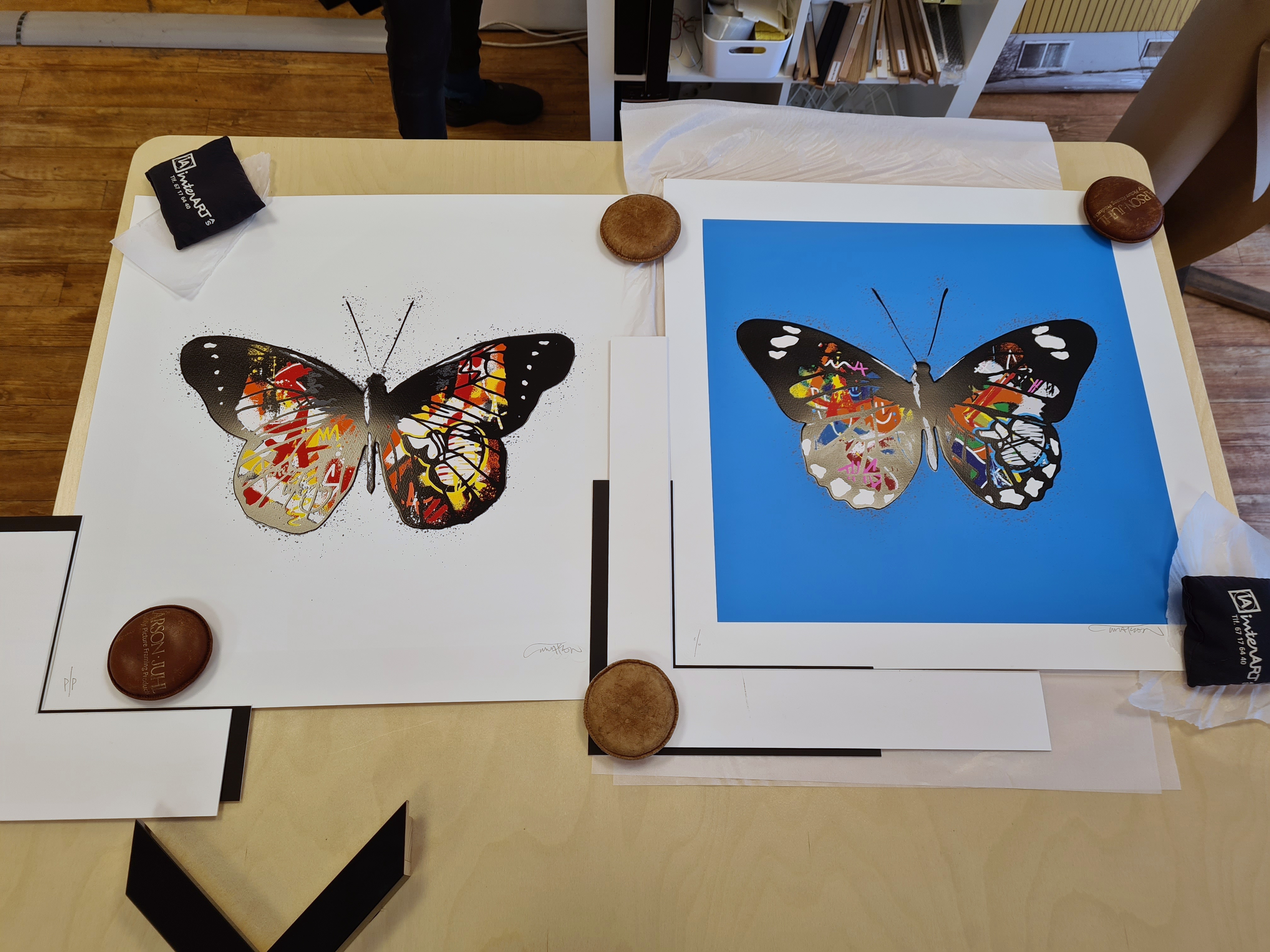 Da var prøvetrykk og ferdig trykk ferdig rammet inn og på vegg