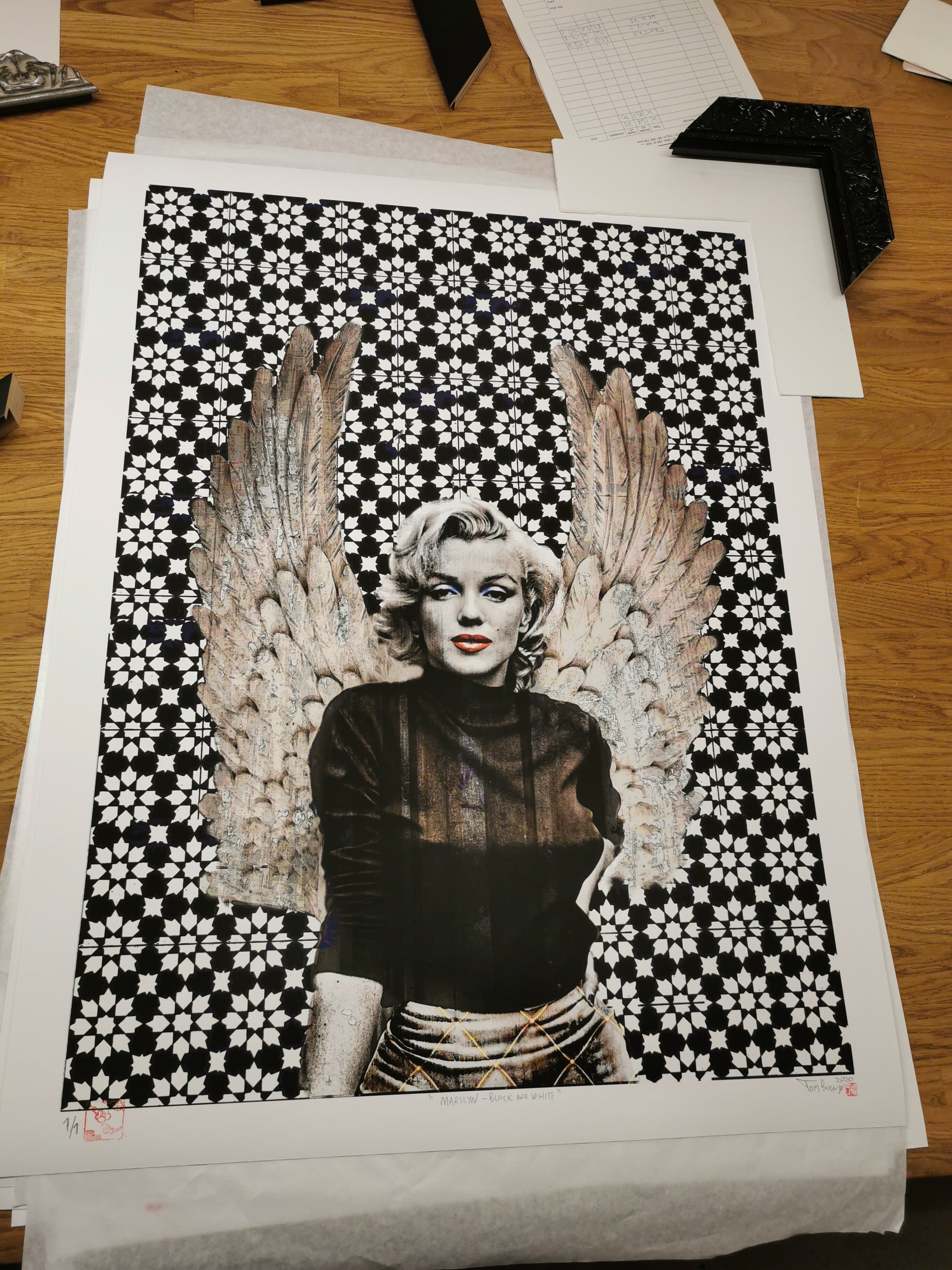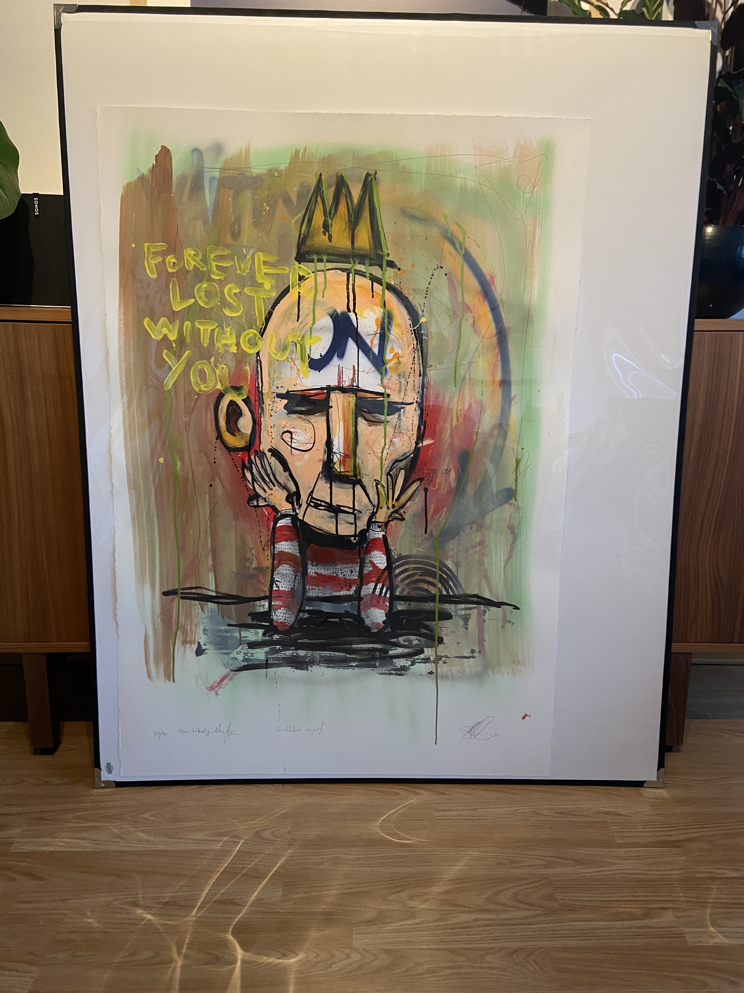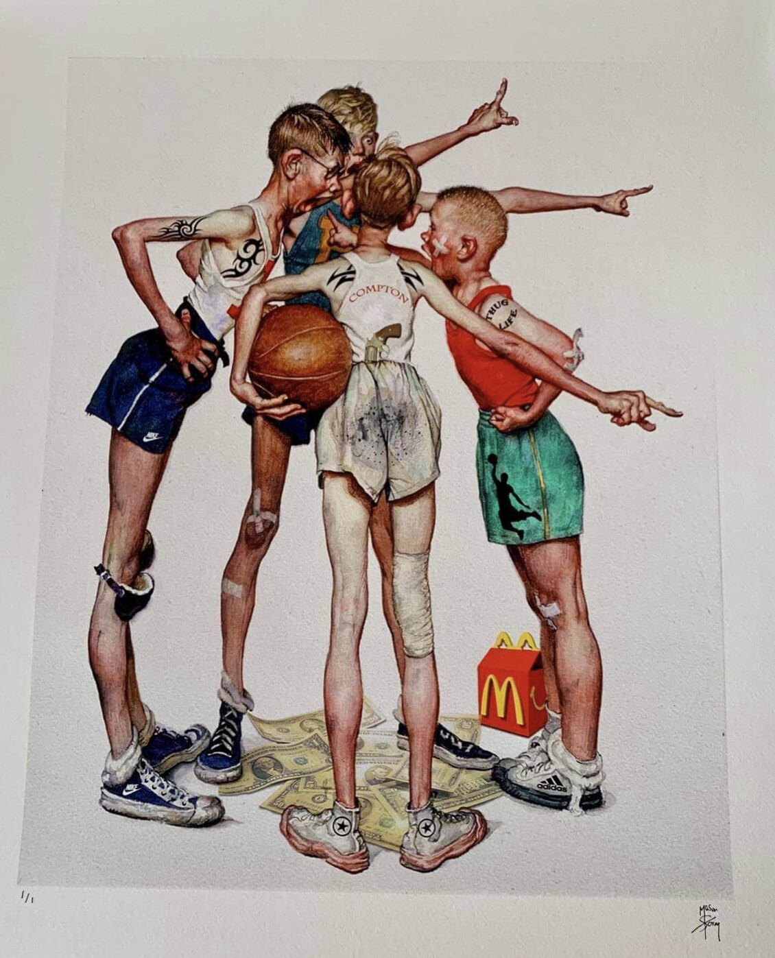 Storm lagde etter eget sigende skissen, som han nå har gitt ut som trykk. Og Skissen ble så brukt som grunnlag for det større maleriet som ble kommisjonert av Team Banksy. Sånn jeg har skjønt det har Storm lov til å gi ut sin skisse som trykk, men ikke hele motivet til Banksy. Og det gir jo mening -Storm ville tjent mye mer hvis han kunne brukt hele bildet.
