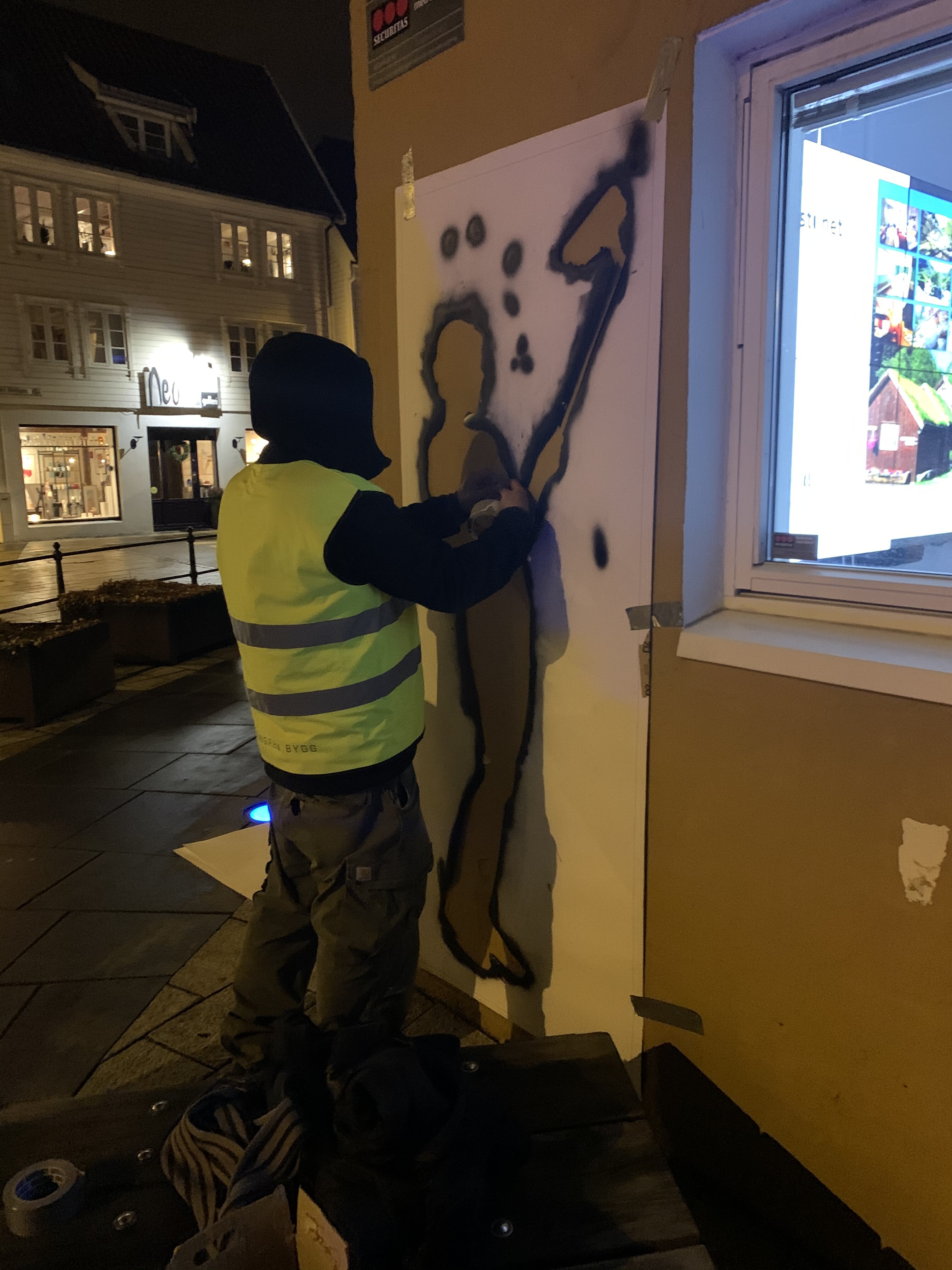 Han lager mange utrolig kule print, men også mange kule installasjoner på bygg.